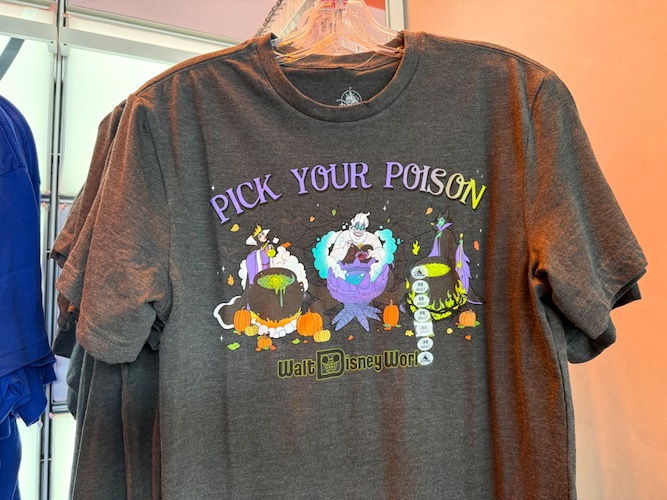 A villain-centric “Pick Your Poison" shirt features the Evil Queen, Ursula and Maleficent.