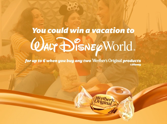 - The Werther’s Original Spring Sweepstakes is easy to enter! When you purchase two Werther’s Original products, head here to enter to win a vacation for 6 to Walt Disney World.