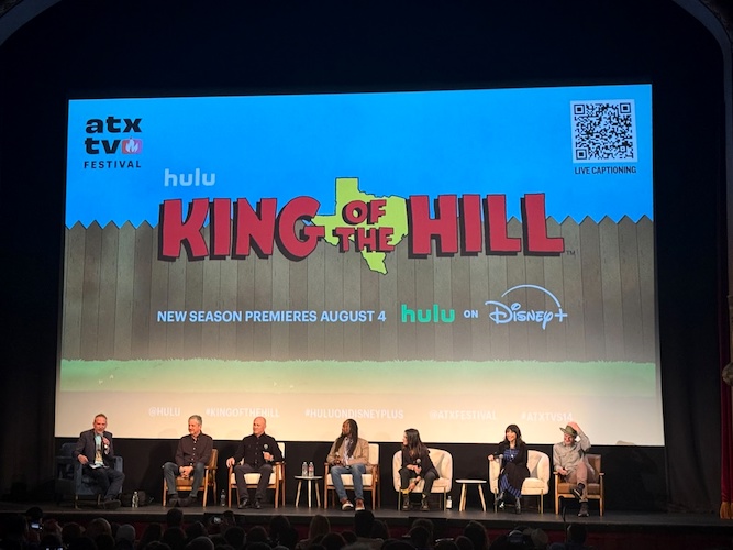 The Paramount Theatre was buzzing with anticipation as King of the Hill fans—many in vintage merch and quoting classic lines—gathered to celebrate the show's long-awaited return. Moderated by Variety’s Michael Schneider, the ATX TV Festival panel featured co-creators Mike Judge and Greg Daniels, new showrunner Saladin K. Patterson, and voice cast Pamela Adlon (Bobby), Lauren Tom (Connie), and Toby Huss (Kahn, Cotton, and now Dale). The night felt less like a promotional event and more like a Texas-sized family reunion.