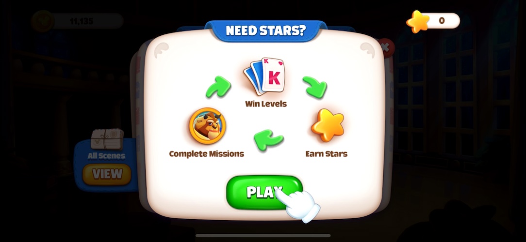 The game starts off with a tale as old as time: Beauty and the Beast. You’ll also enter the world of Disney Solitaire with a handful of coins, which you’ll need in order to try a level. By the way, if you do run out of coins, there is an hourly bonus so you won’t be left out for long.