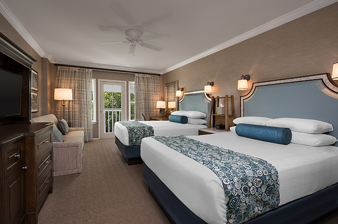 576 Guest Rooms All rooms non-smoking All buildings offer elevators and stairs with interior corridorsResort Features: Disney's Beach Club sits near the Boardwalk area, so it's a short walk from Epcot and World Showcase. The Yacht Club, Swan and Dolphin are also nearby, all within walking distance. The location of Beach Club makes it perfect for guests who want a wide range of dining and entertainment options but don't want to deal with motorized transports. Standard room amenities: Alarm clock with MP3 player, balcony or patio, mini fridge, ceiling fan, coffee maker & setup, hair dryer, in-room safe, iron and ironing board, table & chairs, tea setup, telephone with no surcharge (charges for long-distance will apply), television, USA Today Delivery (Mon-Fri), vanity area, voice mail, Wi-Fi wireless internet