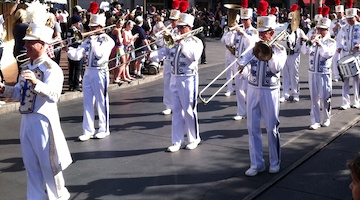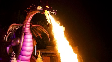 When the sun sets, Disneyland park takes on a whole new look and feel. At night, the park lights up with marvelous shows, parades and fireworks that give every guest a "kiss goodnight" before the evening ends.
