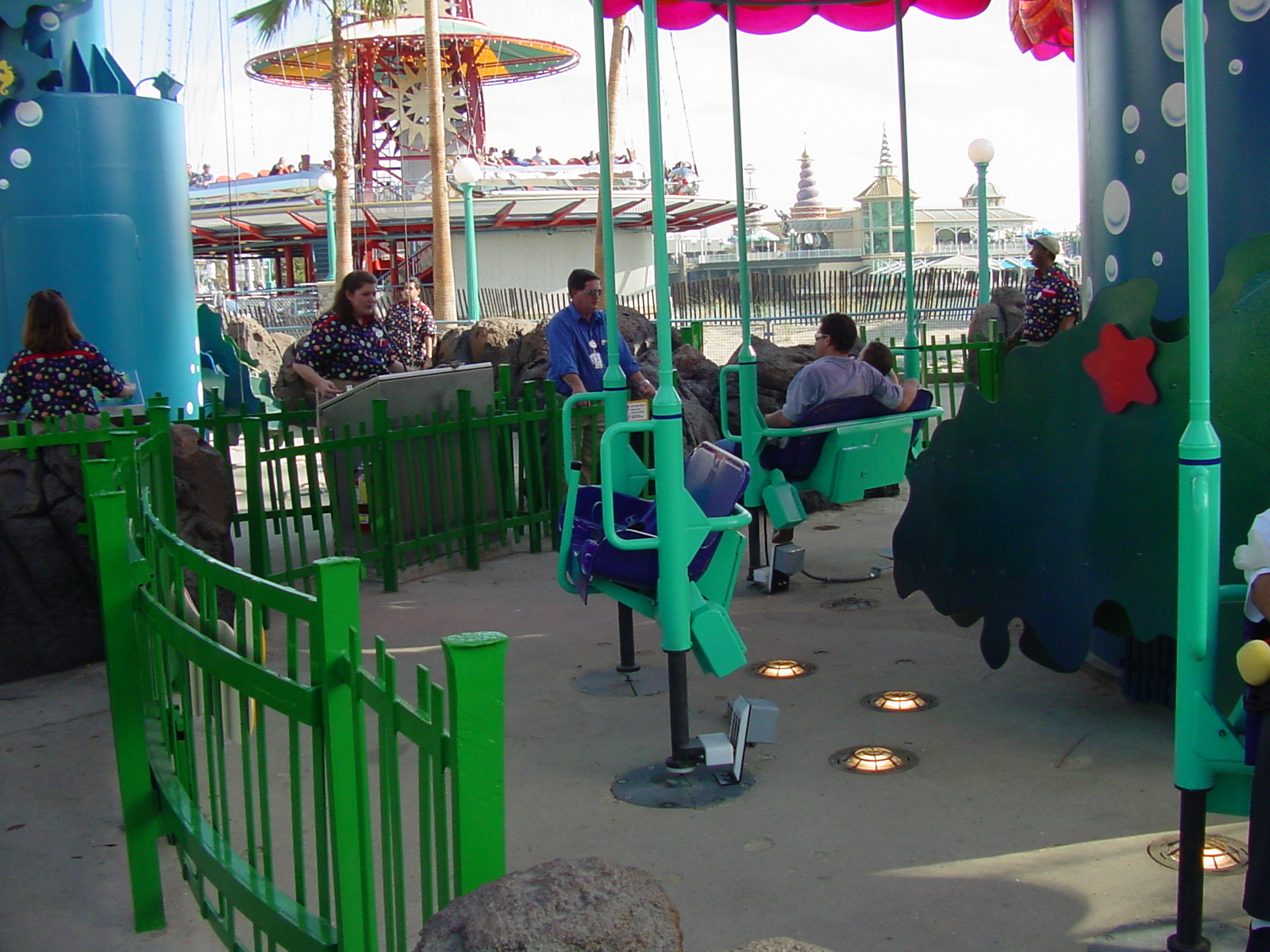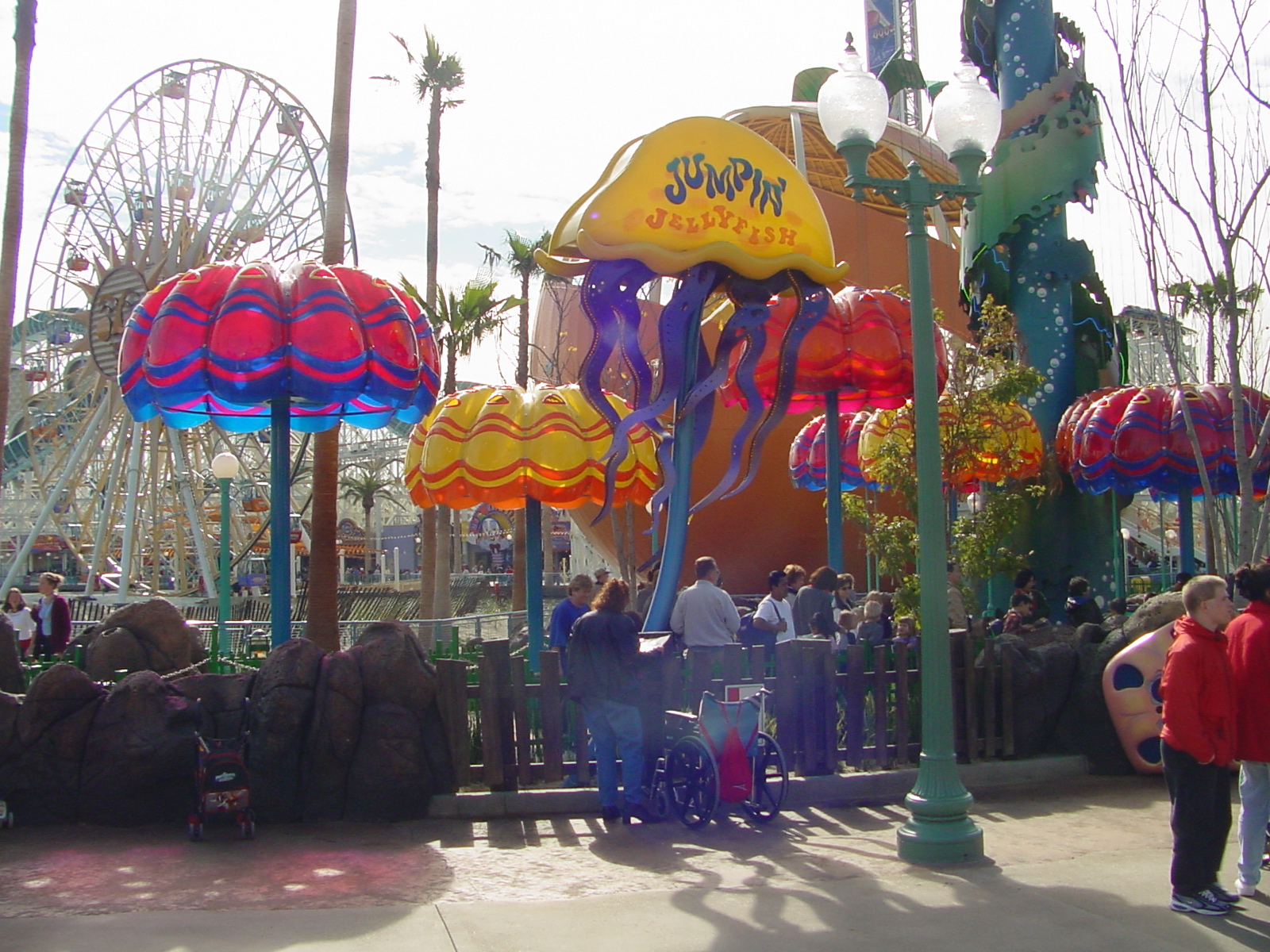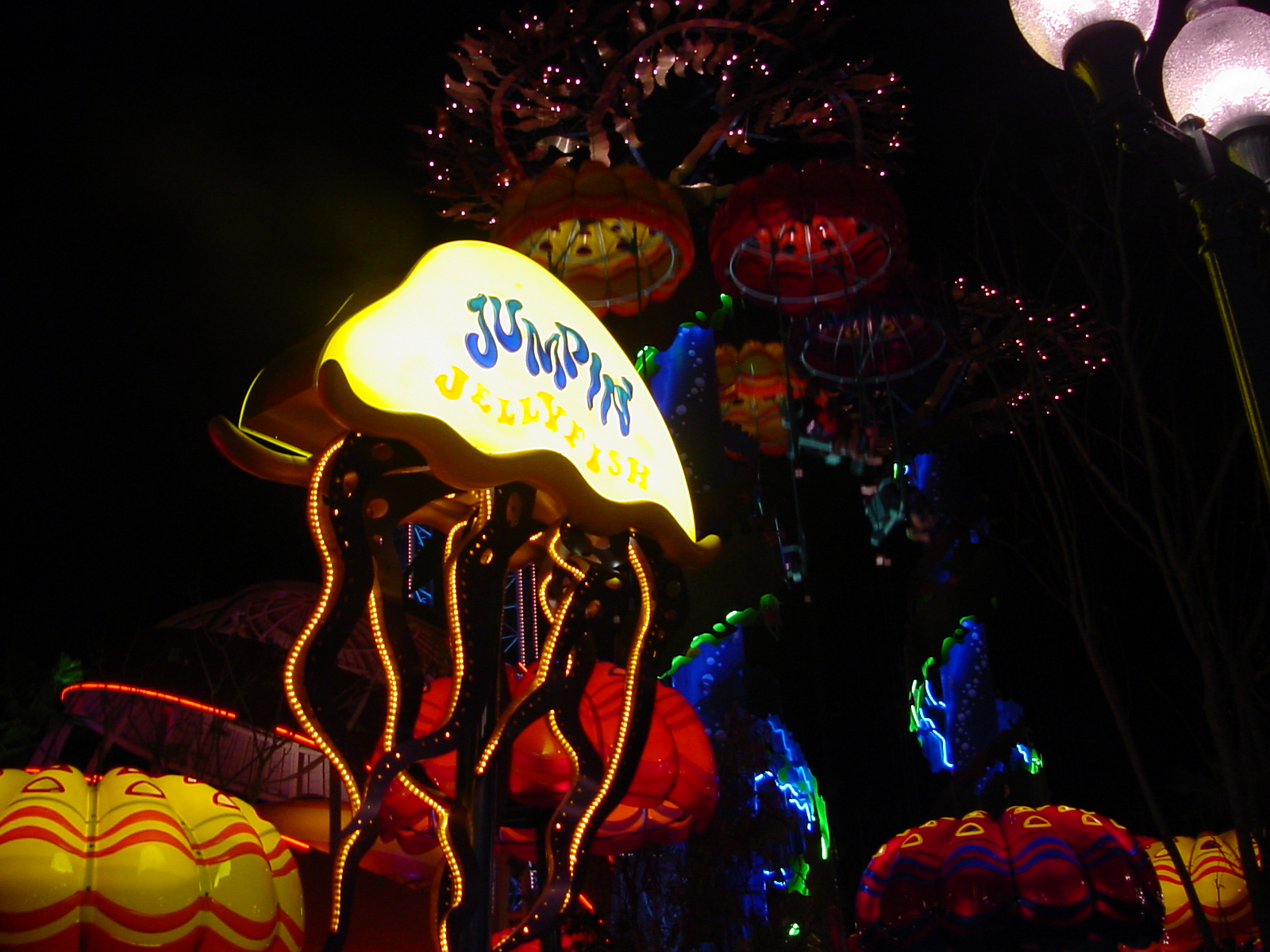 Hop on your jellyfish and avoid getting stung by the tentacles. Look around as you rise above Paradise Park because you'll see new views of the area.