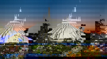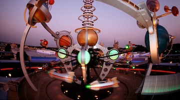 Rising 183 feet above the futuristic Tomorrowland scenery, Space Mountain has taken millions of Magic Kingdom Park guests on a thrilling roller coaster ride through the cosmos since it opened at Walt Disney World Resort in 1975. (Matt Stroshane, photographer)