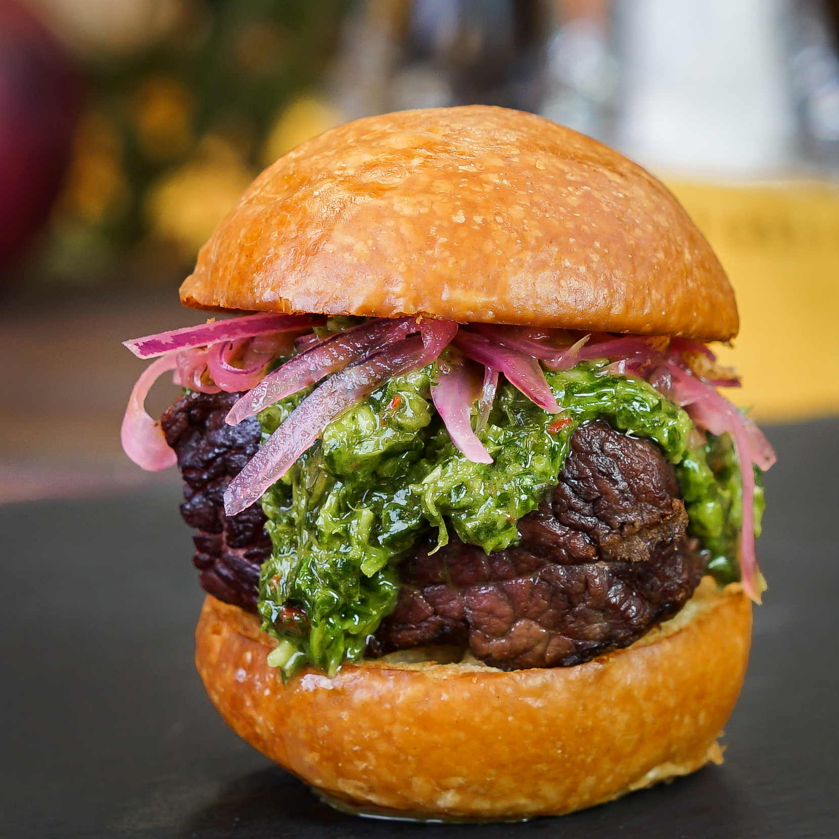 - Black garlic soy-braised pork belly bao with pickled vegetables