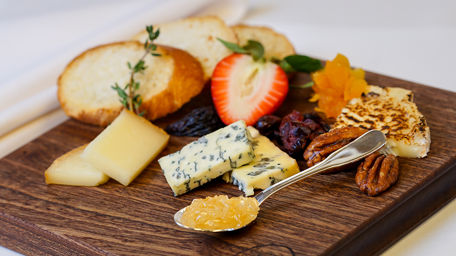 - Cafe Orleans Three-Course Meal (specialty cheese flight with three cheeses, dried fruit, and honeycomb; Shrimp Ratatouille Byaldi layered with roasted zucchini, yellow squash, eggplant, and tomato; Berry-Stuffed Beignets à la Mode served with a sweet brie drizzle and mascarpone) — New Orleans Square, Disneyland