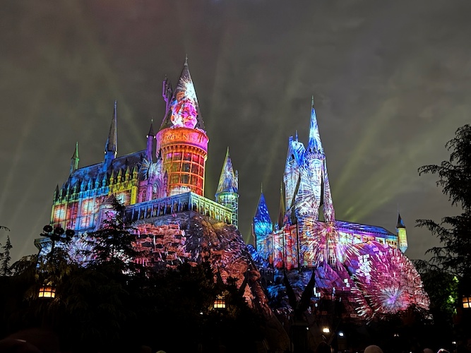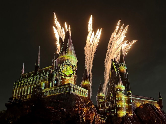 Over at The Wizarding World of Harry Potter, guests can enjoy the Hollywood premiere of Hogwarts Always, a breathtaking projection show that debuted last year at Universal Orlando. The show takes you on a magical journey through a school year at Hogwarts with unforgettable music and incredible moments of wizardry, all set against the majestic backdrop of Hogwarts Castle.