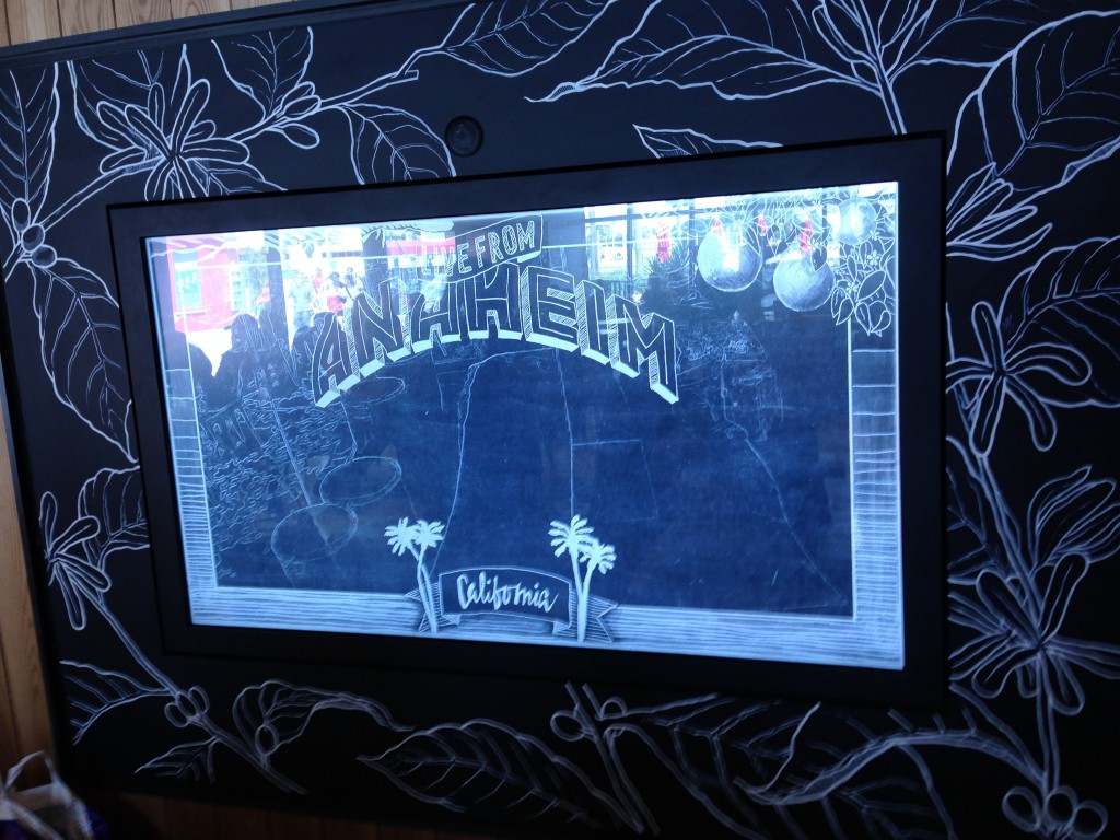 Other fun things about this store is they have a touch "chalkboard" screen that ties to the Anaheim Downtown Disney store so you can watch them and they can watch you enjoying your Starbucks!