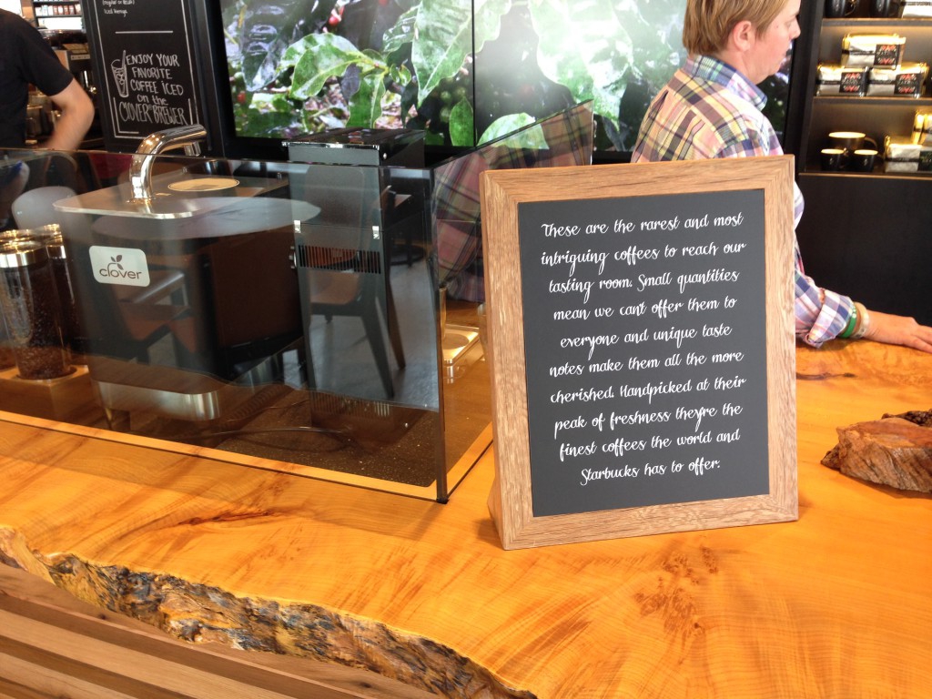 This location is one of two "Starbucks Reserve" stores in the Central Florida area that feature the Clover Brewer system which is available from it's own counter.