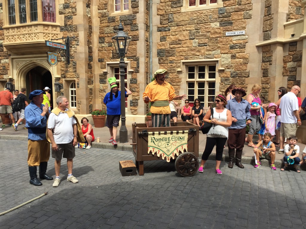 In 1982 a local comedy troupe was brought into E.P.C.O.T. Center to provide a bit of entertainment in World Showcase called the Olde Globe Players. That group went on for years and eventually became the World Showcase Players who would preform shows in Italy and U.K. Pavilions for many years before being downsized to just U.K.
