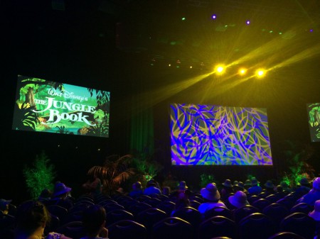 Finally, it was movie time. Several times during the movie, our host appeared for a few moments when it was time to sing along. And if you didn't remember the words, they appeared on the screen. The sing along part was interactive. For example, we were told to march like an elephant during "Colonel Hathi's March" and hiss like Kaa during "Trust In Me." This made it seem more enjoyable, and kept thr audience entertained as well.