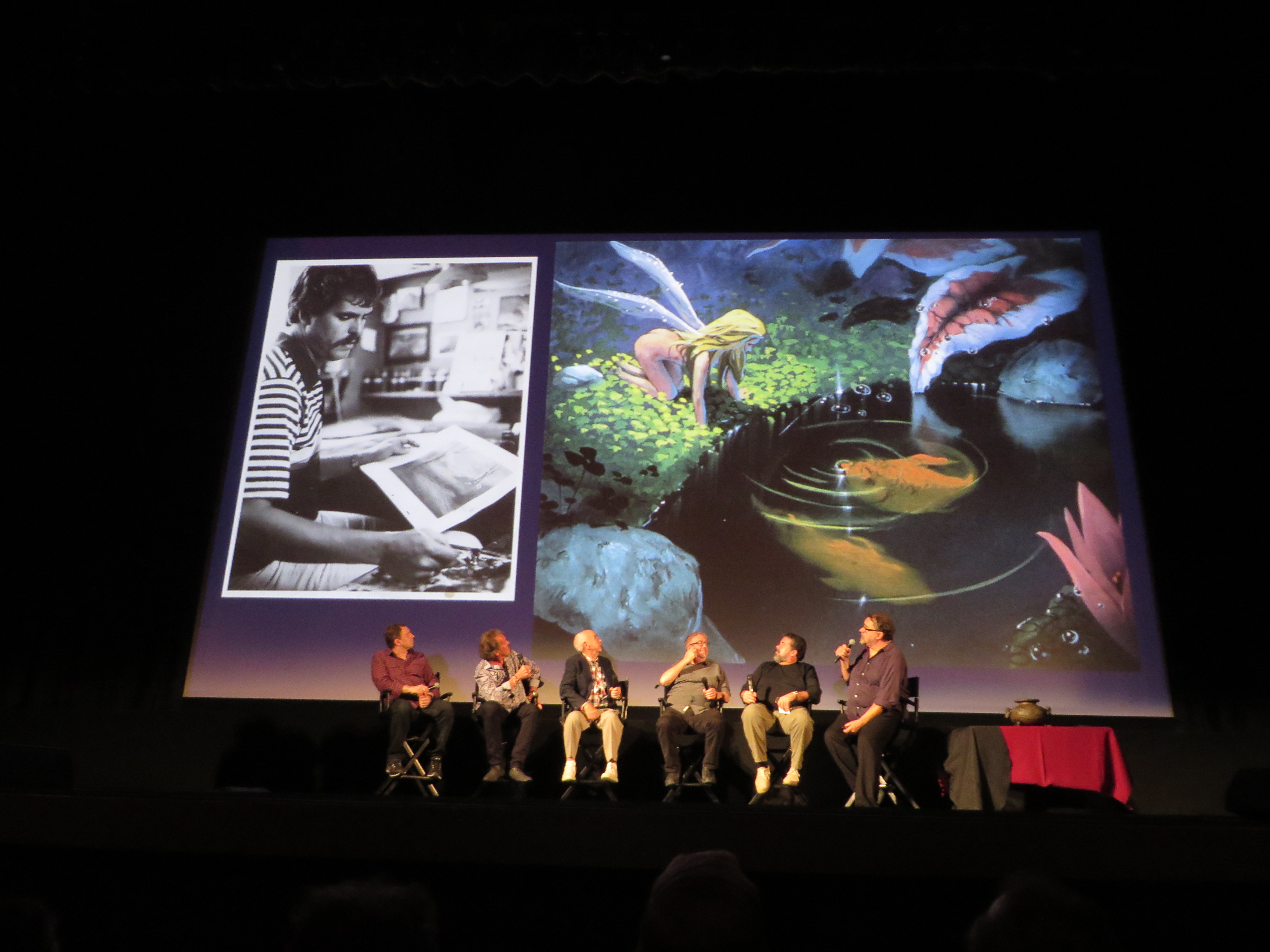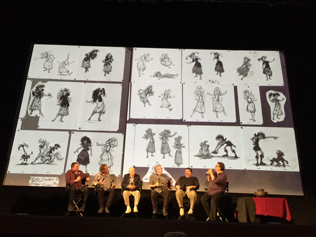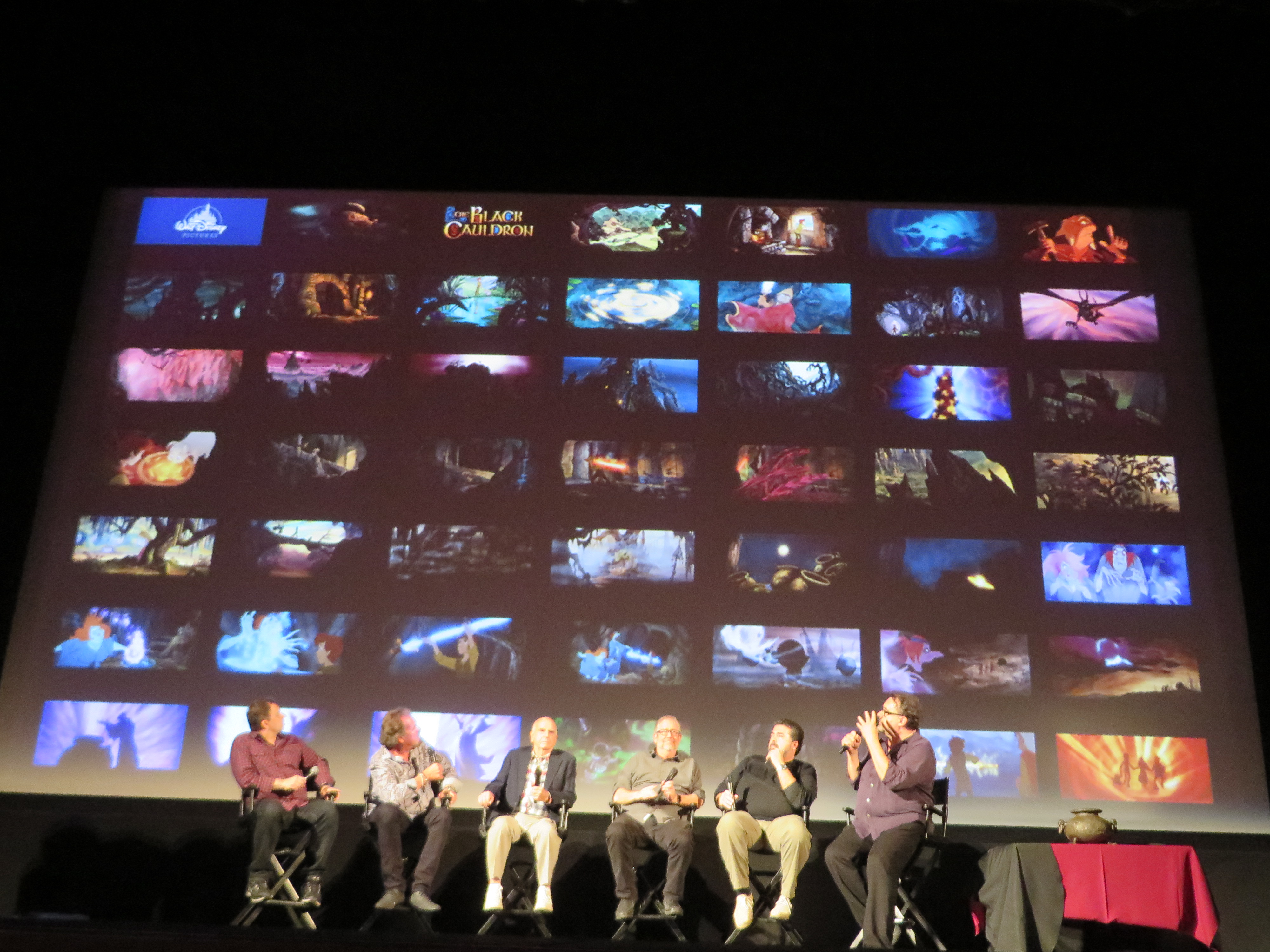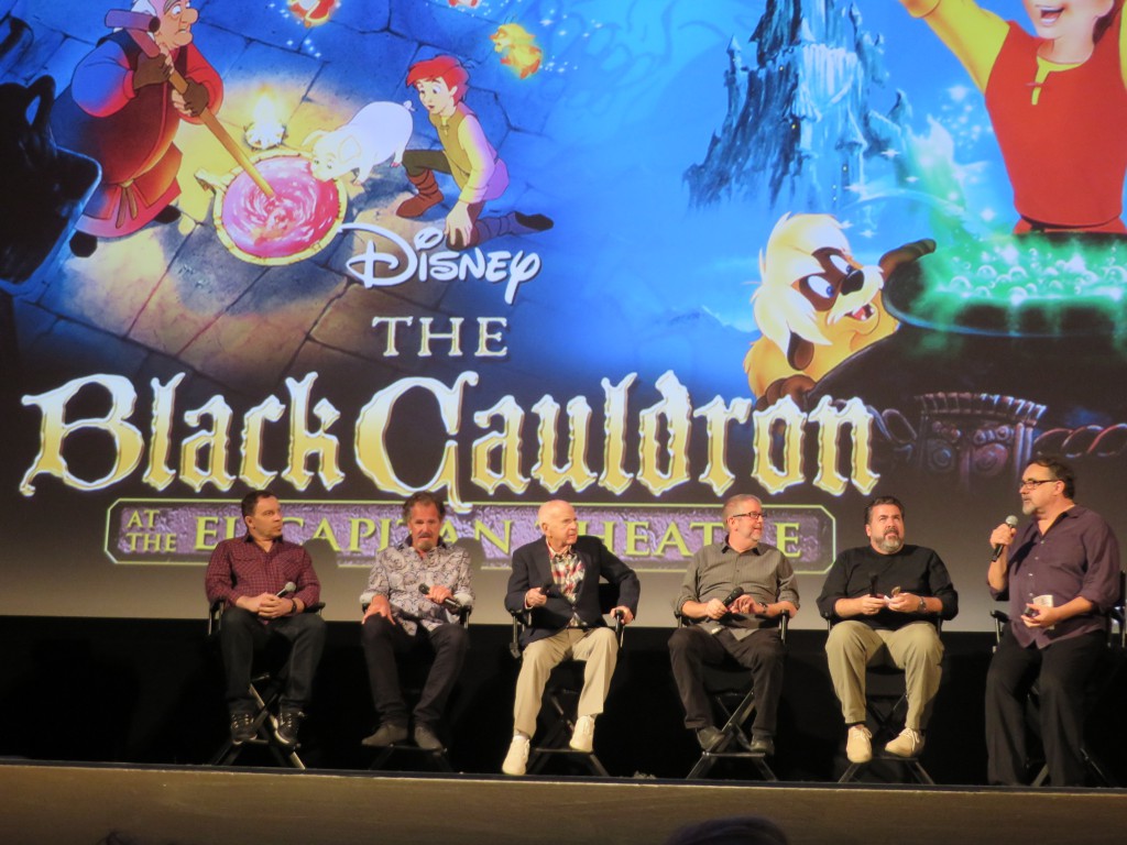 I was lucky enough to be visiting California for the first night of the three-night run which was kicked off by a gathering of people who were some of the "lucky" few that can put their name on this film. Don Hahn — production manager, Dave Bossert — animator, Joe Hale — producer of the film, Jim Coleman — color stylist for the film, Richard Kraft — agent to the stars & Andreas Deja — one of the lead artist on the film all gathered to share their history and stories of the making of The Black Cauldron.