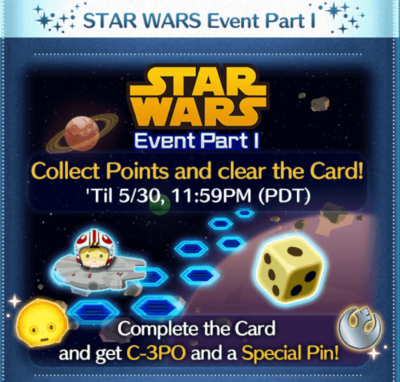 Part 1 of the Star Wars Event ends on May 30th, so if you haven't finished the cards there's a few days left. Part 2 is coming soon and the rumor is that Princess Leia will be the exclusive event Tsum Tsum.