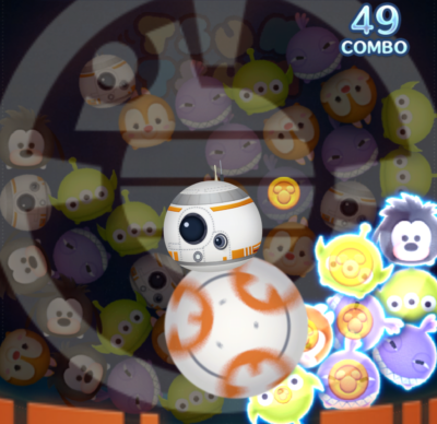 From the highest grossing film of 2016, Star Wars: The Force Awakens, comes BB-8, the cutest round droid in all the galaxy. He rolls across the bottom of the screen clearing all Tsum Tsums in his path.