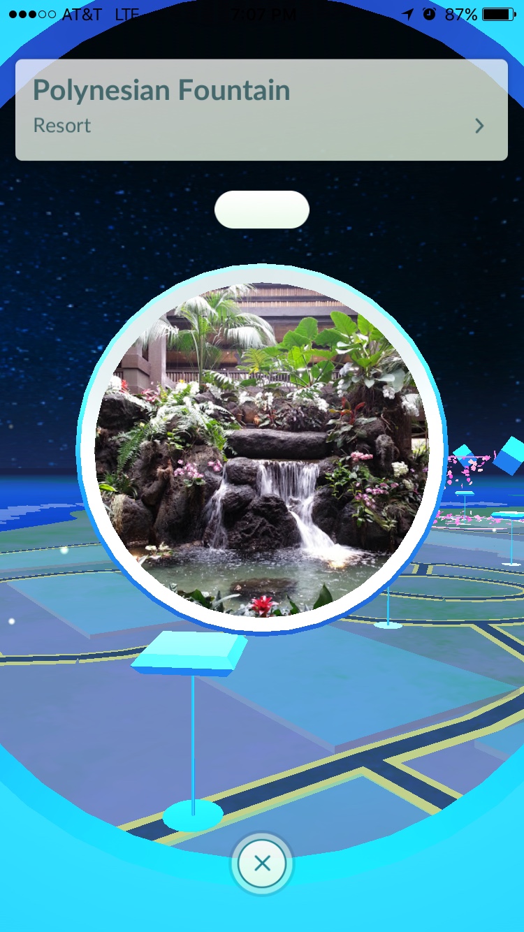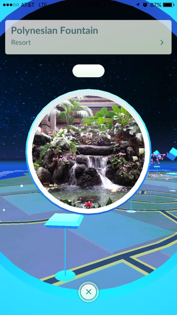At the Polynesian Village Resort, we also discovered a Pokéstop at the old lobby fountain, an outdated Pokéstop already and a sad reminder of what once was there.