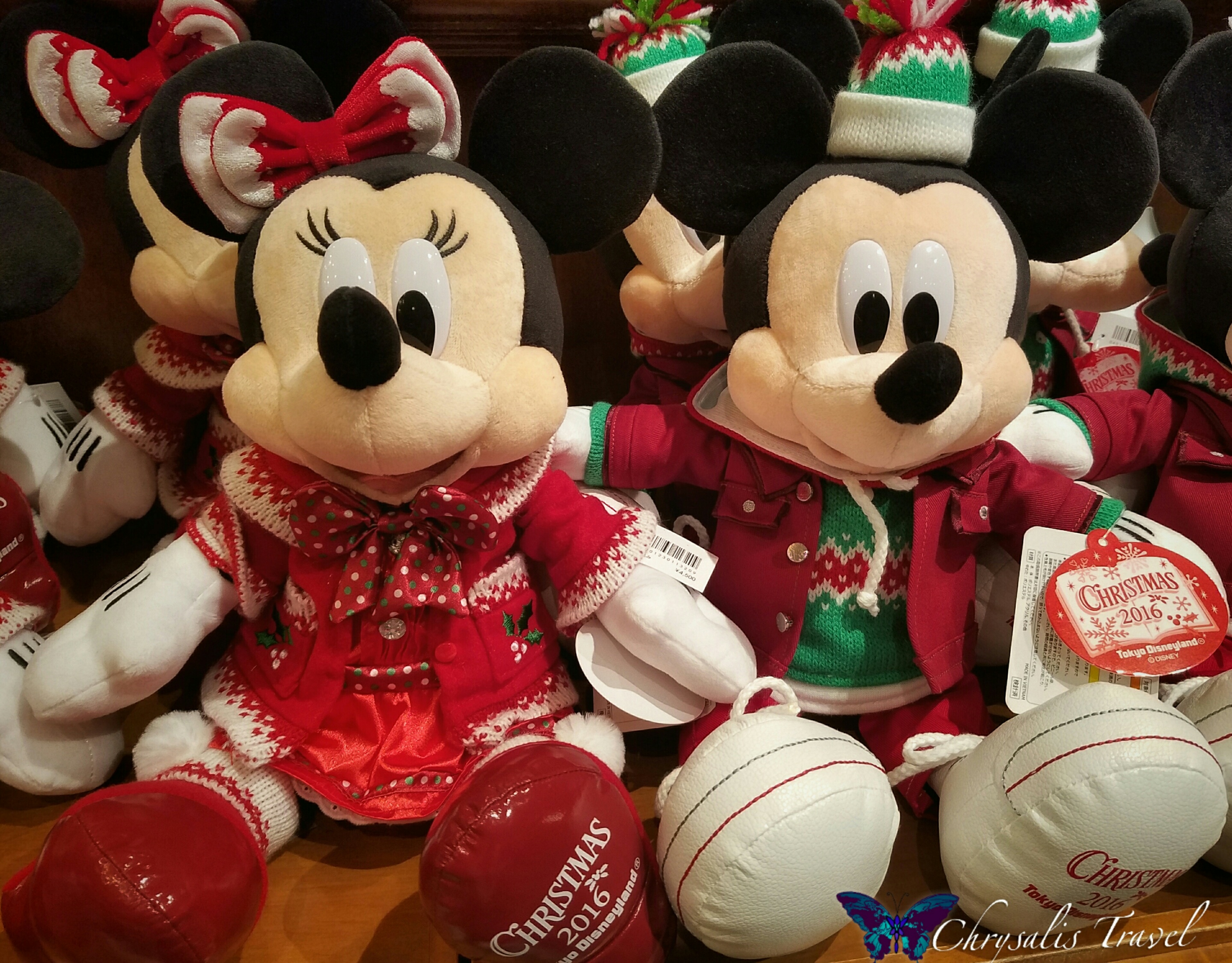 Plush are priced relatively higher at Tokyo Disney Resort than they are stateside. Mickey and Minnie were about 14 inches tall, and priced around $45 USD each.