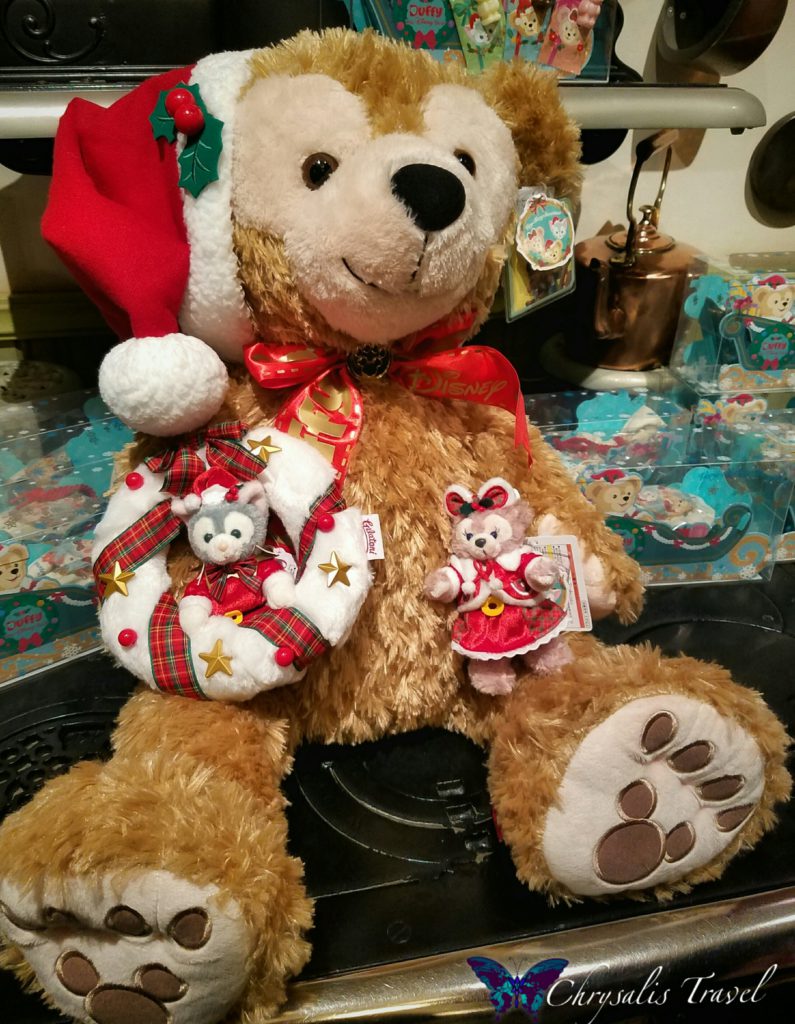 Mickey’s bear, Duffy, is a celebrity in Tokyo, and exclusive to only Tokyo DisneySea. In addition, Duffy merchandise is limited to only three stores within Tokyo DisneySea. And not every item can be found in every store. Here are Christmas outfits for Duffy, Shellie Mae, and Gelatoni.