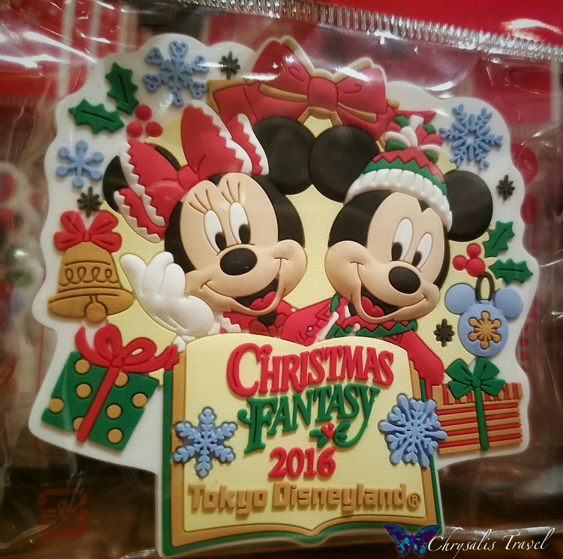 The theme this season at Tokyo Disneyland is “Christmas Fantasy 2016,” as highlighted on this magnet. Magnets and postcards are each individually wrapped in Tokyo.