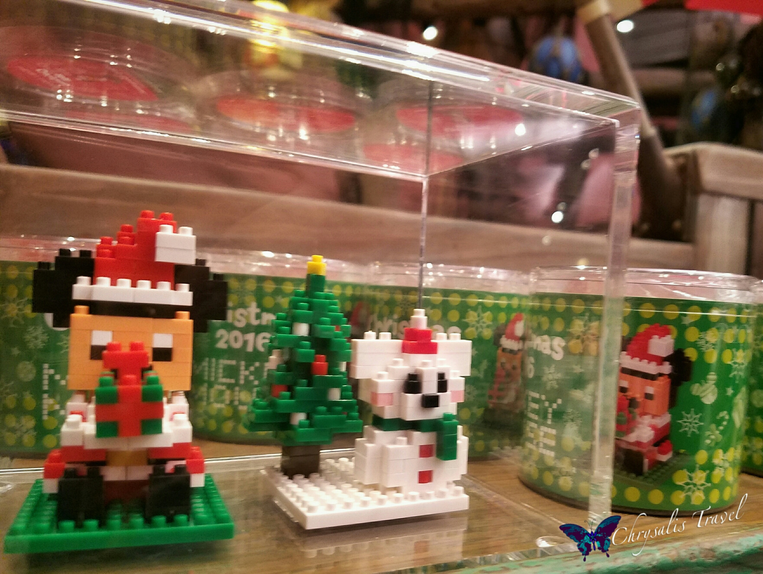 Nanoblocks (super-tiny versions of Lego) come in special seasonal releases. Here, we see Santa Mickey, and a Mickey “SnoSnow” (more on the SnoSnow to come). These nanoblock sets are priced surprisingly high for their size. Non-Disney nanoblock sets include the Eiffel Tower, Venice, and Neuschwanstein.