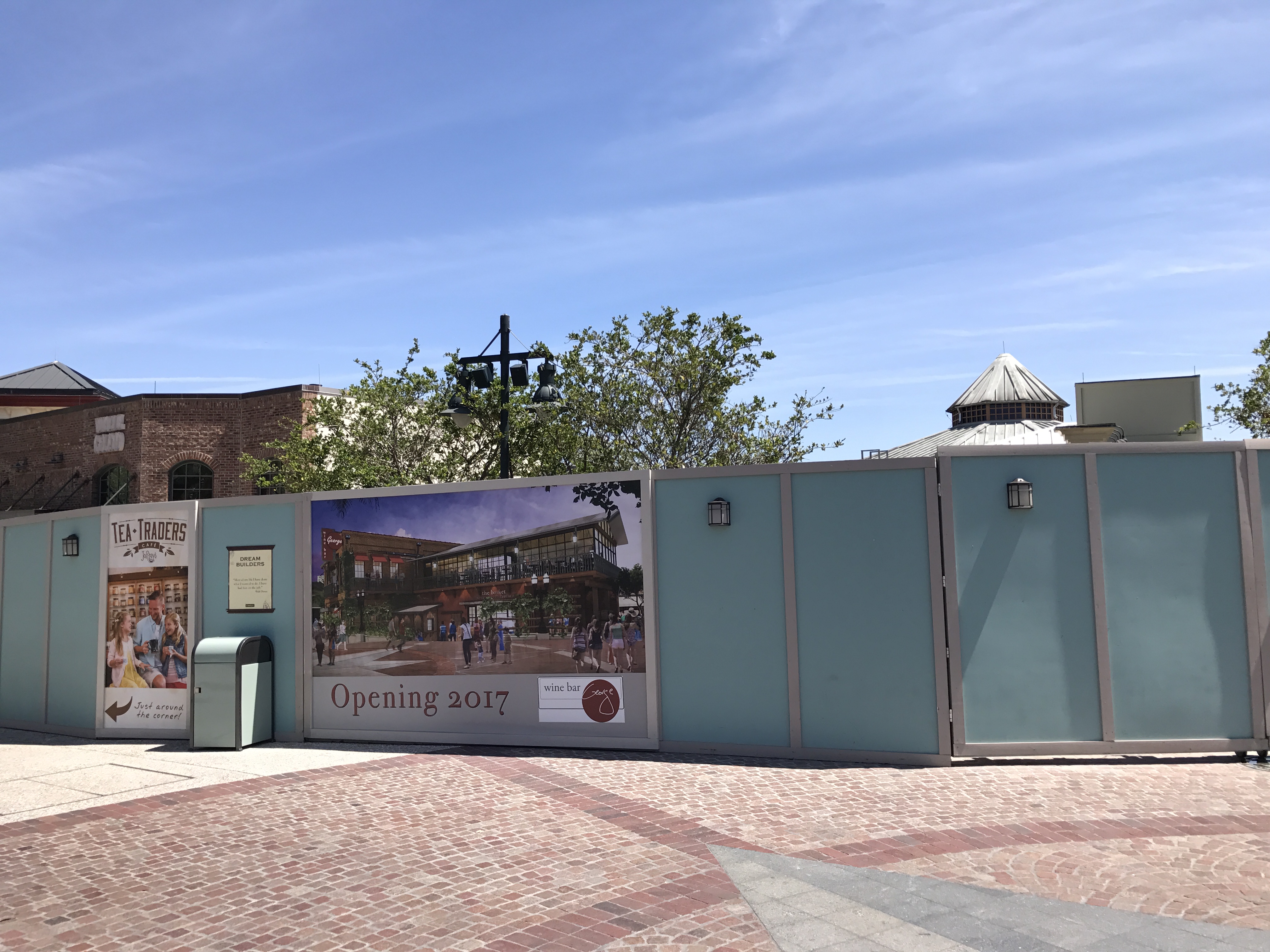 Moving away from the Landing area toward the Marketplace, Wine Bar George has had little work done since its announcement, but is still listed as a "Fall 2017" opening.