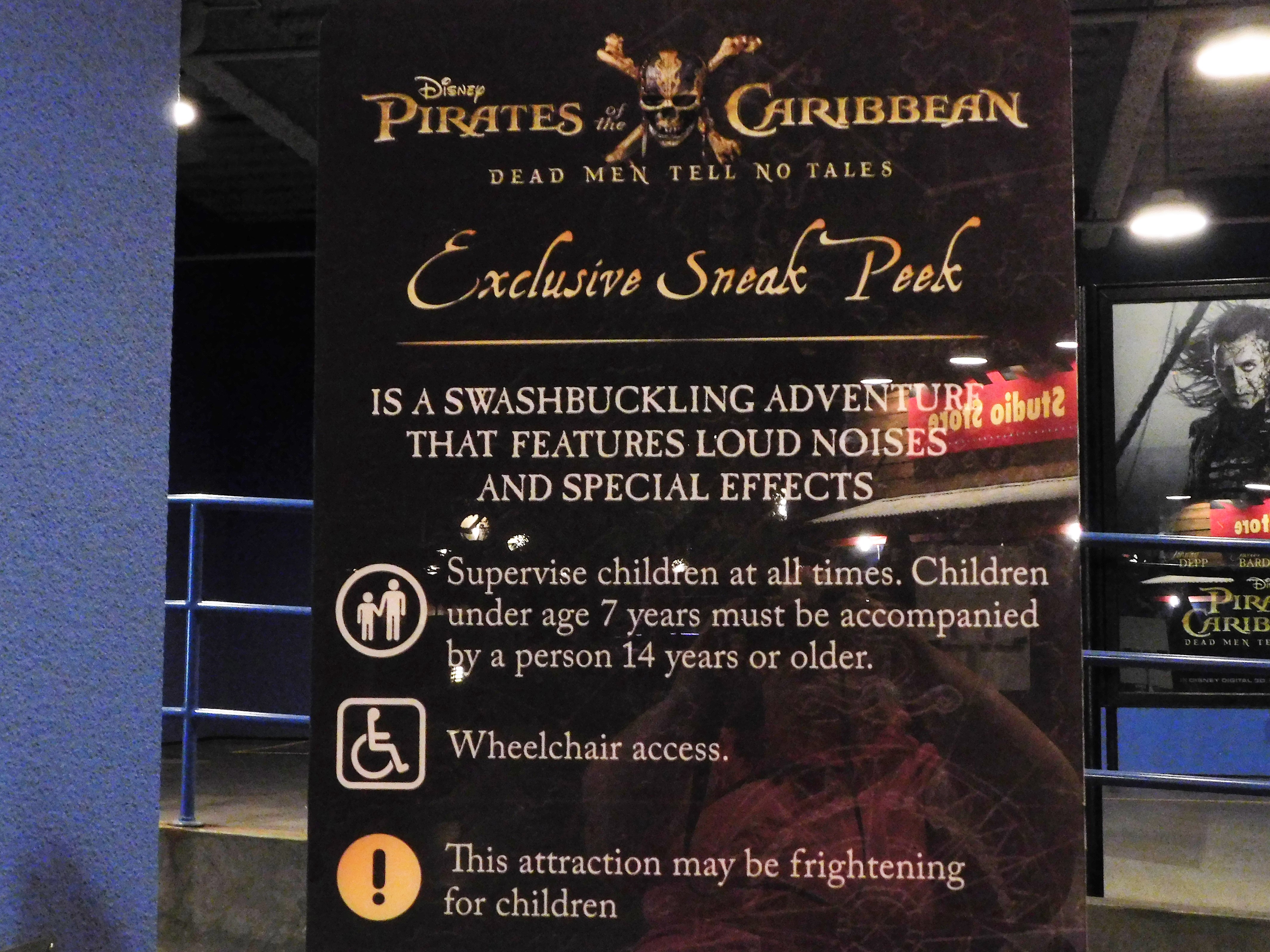 [gallery td_select_gallery_slide="slide" ids="206593,206592,206591,206590,206595,206594"]The 3D sneak peek is now open at Disney California Adventure while a 2D version is currently screening at One Man's Dream in Disney's Hollywood Studios. Pirates of the Caribbean: Dead Men Tell No Tales sails into theatres May 26th.