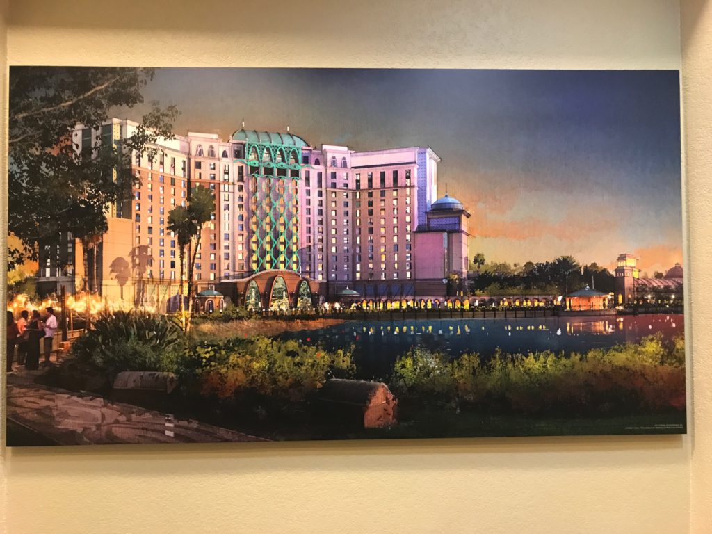 As Disney's Corondao Springs Resort continues its expansion, there is a preview of the work inside the lobby of the Resort. Guests can see a model of the expanded resort as well as concept art.