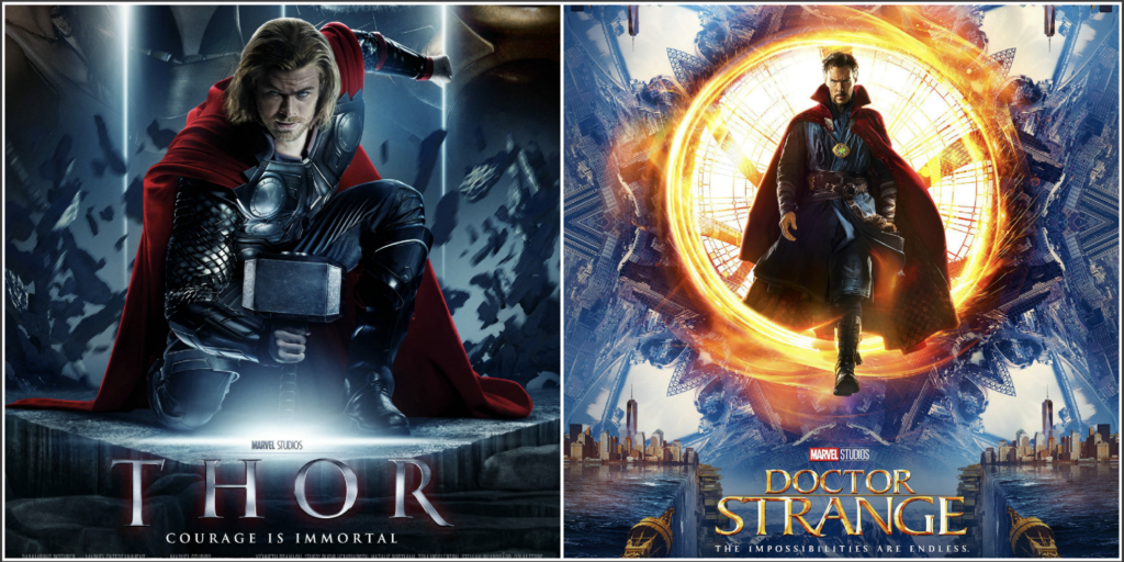 Since Thor lives in a different realm from Earth, it seemed right that his challenger has the ability to travel through space (and time) and has also been taught a lesson in humility. Doctor Stephen Strange was a skilled surgeon who's hands were badly damaged in a car accident. Unable to perform surgery, Strange seeks a cure for himself and finds magic. Along with the magic comes the ability to cast spells, move from place to place instantaneously, a cape that has a mind of its own, and the job of protecting Earth from otherworldly things...