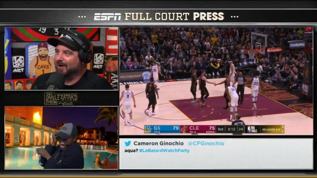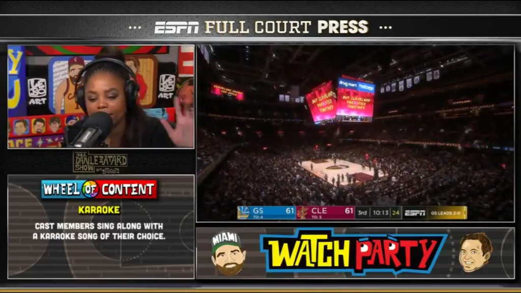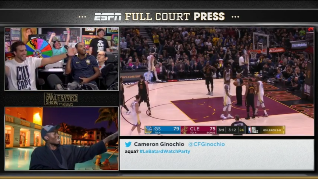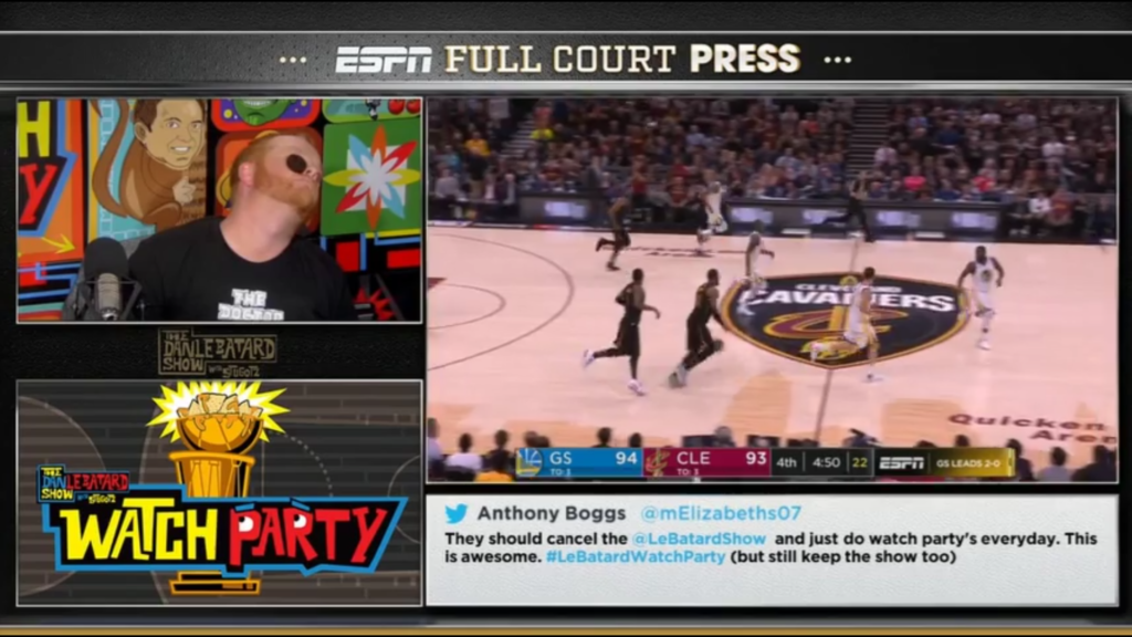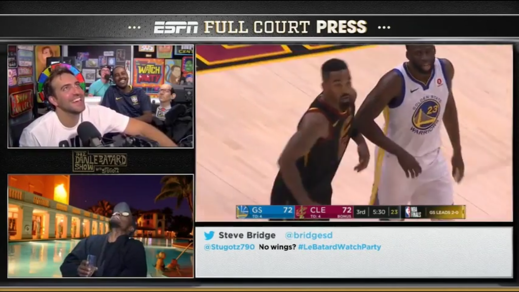 Kudos to ESPN for offering alternative viewing options for the current NBA Finals. I hope that someday all major events will offer us broader consumer choices as we found during Wednesday evening Game 3 of the NBA Finals. Not being emotionally invested in this series, chances are I would’ve tuned in late if the score was close or most likely have waited to simply watch the highlights on the late night Scott Van Pelt hosted Sportscenter, but instead I was watching from beginning to end with the guys of the Le Batard show who make me laugh every morning.