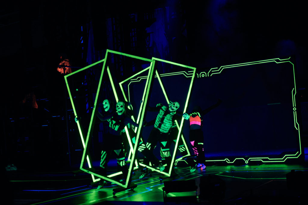 Guests looking to escapes the scares for a bit can watch this amazing dance troupe Academy of Villains, who put on a fantastic show at Halloween Horror Nights for the third year in a row. This year's show is titled "Cyberpunk" and tells a futuristic story in which the human race has been overrun by machines.