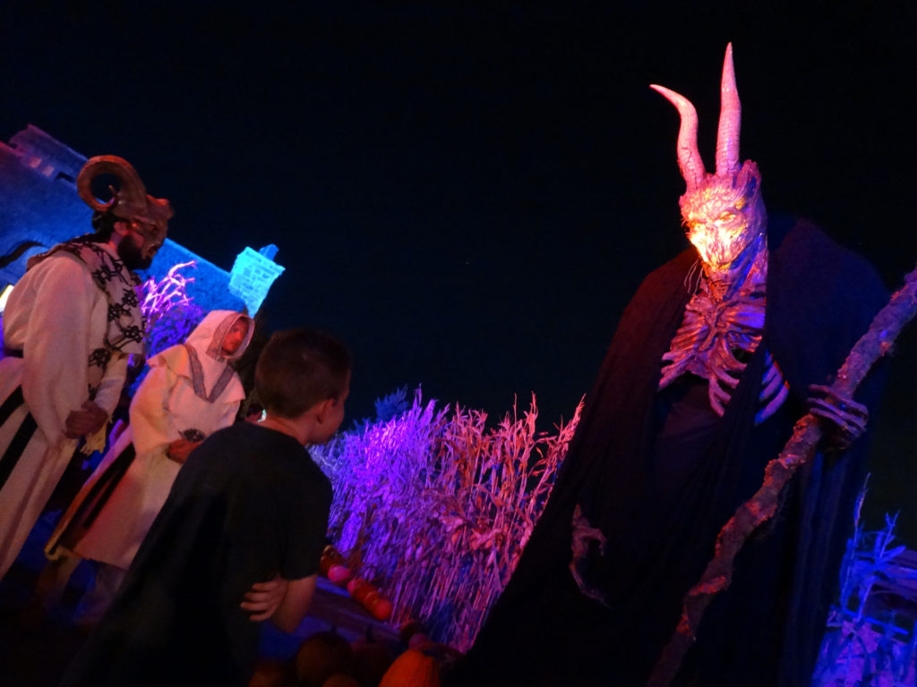 There’s no fighting in Evermore (at least not that I saw) but there is an assortment of tasks assigned by goblins, elves, ghosts, vampires, and yes, also the occasional human. During my visit on the grand opening night I helped a barmaid at the town tavern reclaim pieces from her stolen pearl necklace, found a temporary cure for a strange disease contracted by a local treasure seeker on a recent foray into the mysterious woods, and tried my hand at archery to earn a spot among the town’s hunters guild—I failed at that last one, but it was fun anyway. At one point my fellow reporter Jeremiah and I were even sworn in among a band of druids in front of their menacing 15-foot-tall animatronic devil-god.
