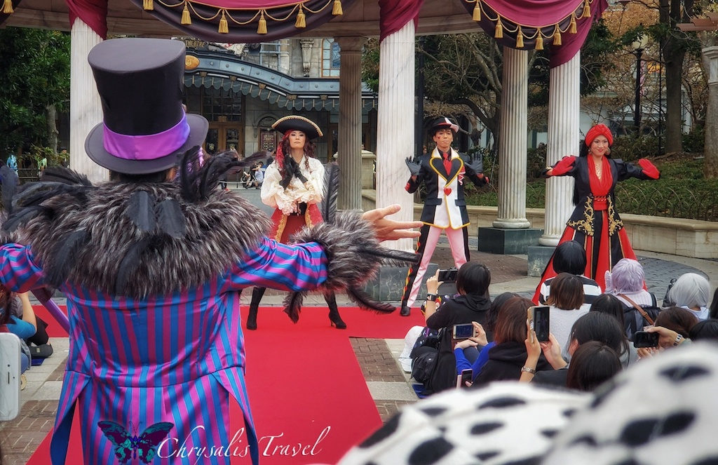 Halloween at Tokyo DisneySea means the return of “The Villains World” – a 25-minute water spectacle involving five ornately-decorated ships, 120 stage performers, and some of your favorite Disney Villains.Mickey and friends are invited by the Villains to attend their Halloween party. “Out of respect,” says the Tokyo Disneyland website, they coordinate their costumes with those of the Villains. Each Villain in turn gets to showcase their particular style, supported by themed dancers around Mediterranean Harbor.