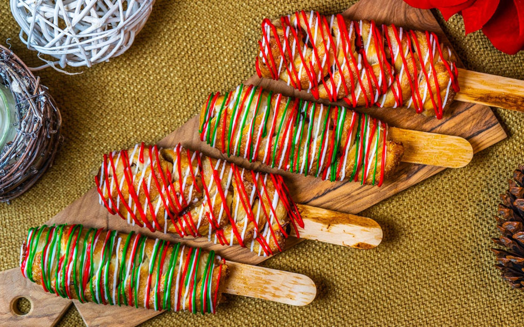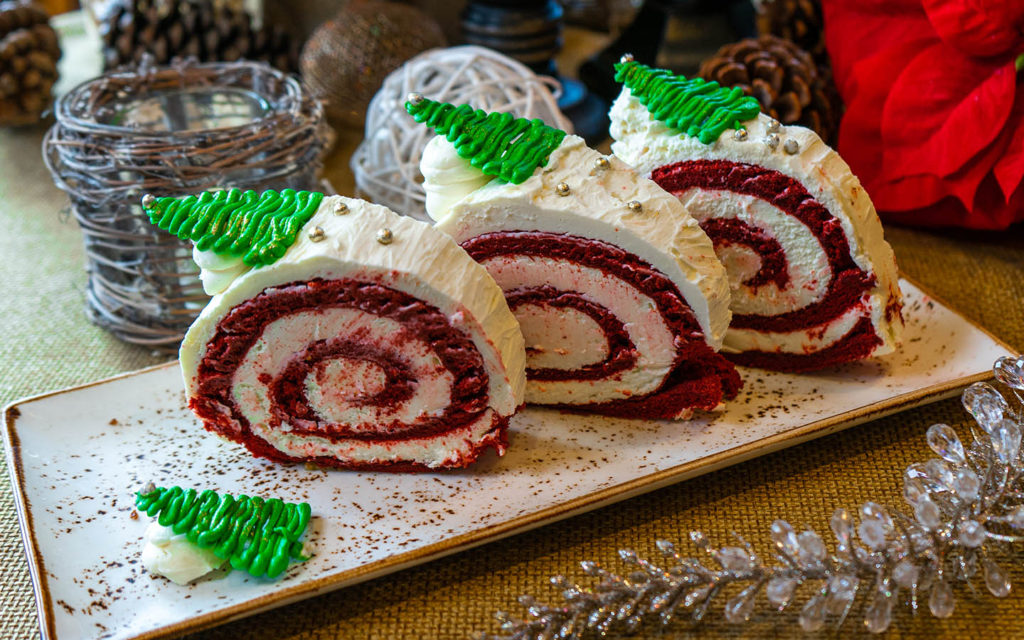Guests can enjoy the Red Velvet Yule Log complete with cream cheese frosting, available at Croissant Moon Bakery in Universal’s Islands of Adventure and Beverly Hills Boulangerie and San Francisco Pastry Company in Universal Studios Florida.