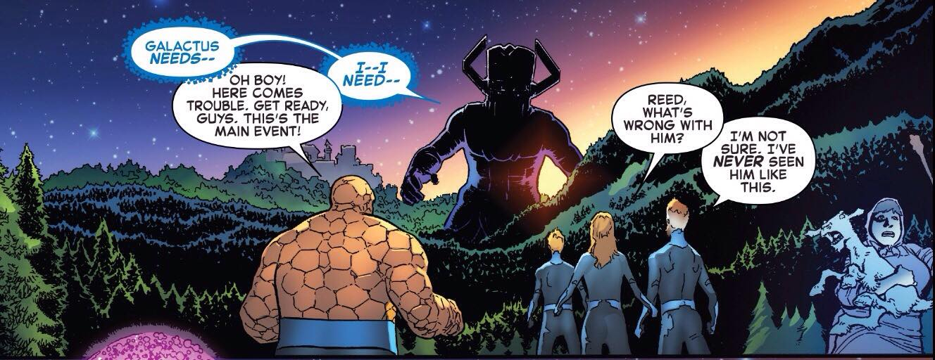 The story picks up right after the Grimm-Masters wedding, which ended with Doom alerting everyone to the presence of Galactus in his home country of Latveria. Naturally, the Fantastic Four head over there to control the issue, but Doom has other ideas.