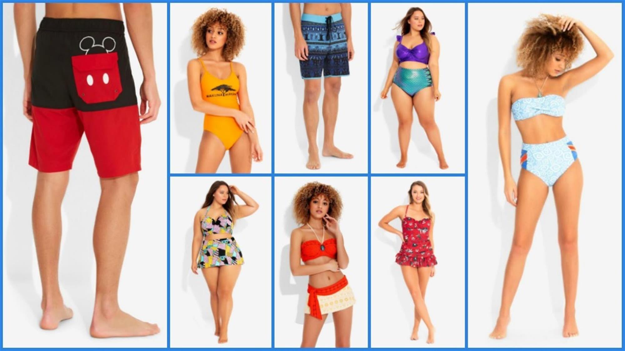 - Hot Topic revealed tons of awesome swimwear separates that were inspired by Disney characters and films. This fantastic collection has several looks for men and women and even includes plus size styles.