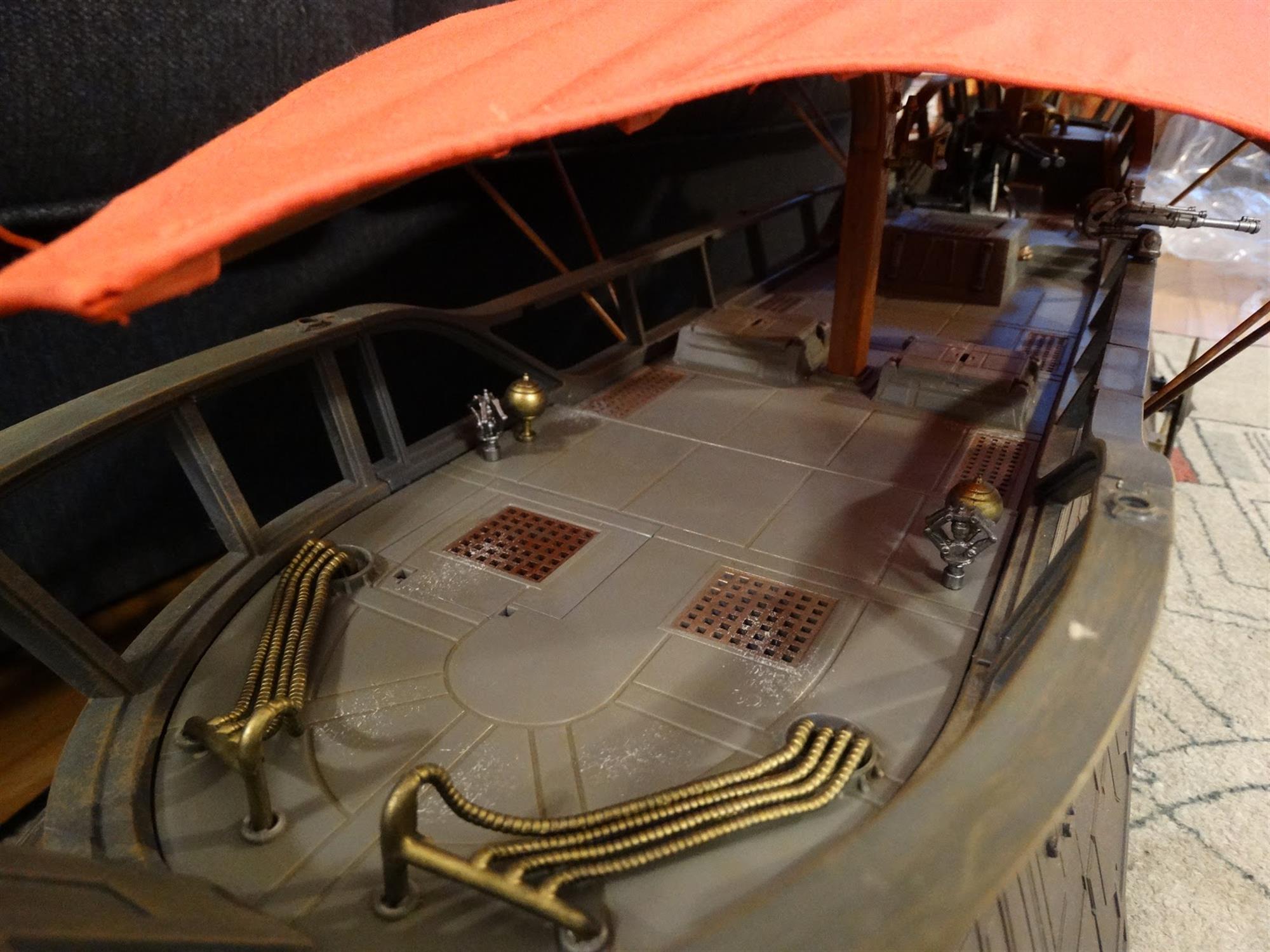 The next compartment over is home to the Sail Barge’s galley and armory, where alien chefs can cook up odd-looking amphibians and skiff guards can store their various weaponry. There’s also steps leading up to the deck and hatches that swing open to allow movement around the craft.