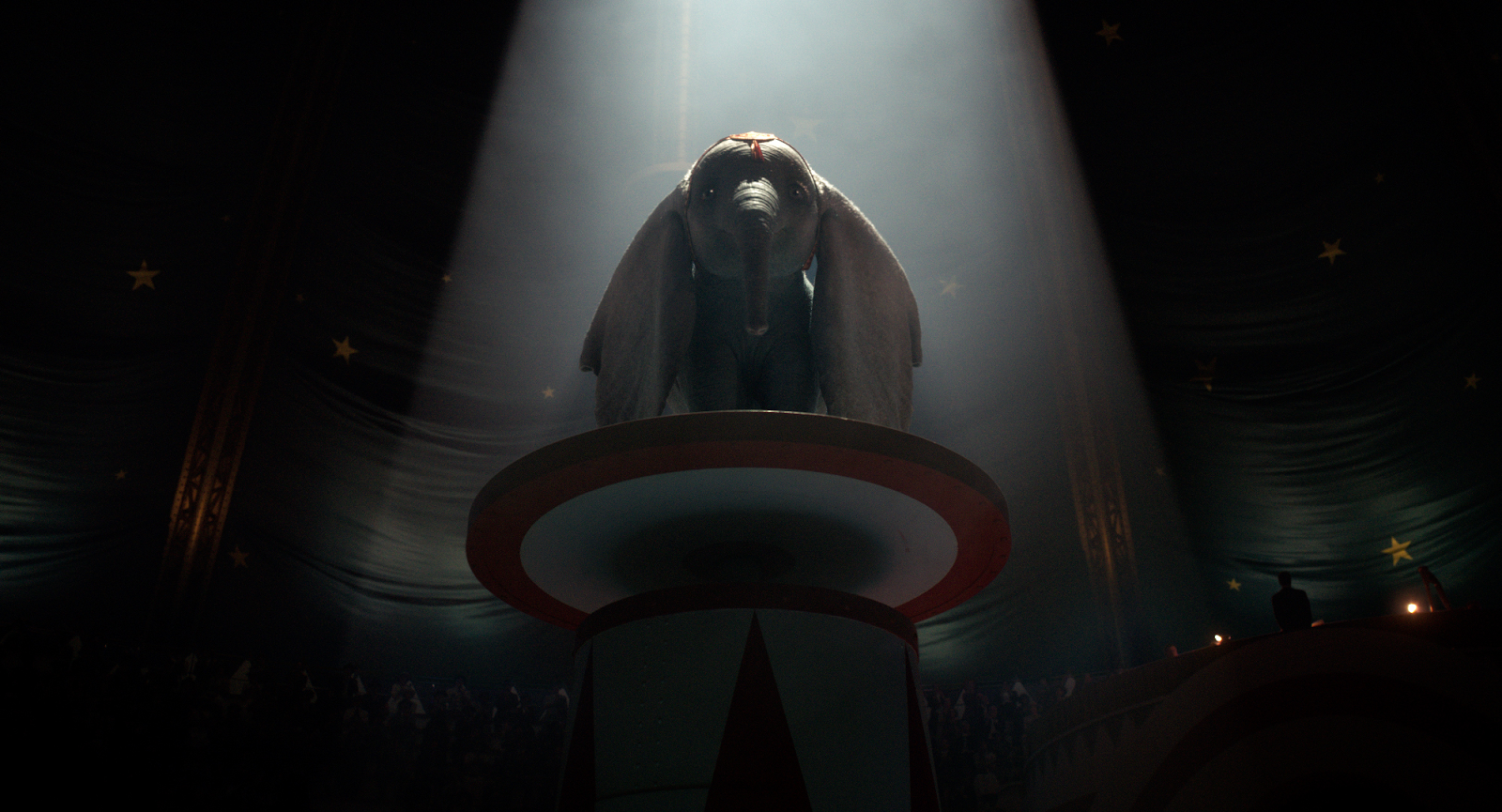 The essential elements of Dumbo remain. A baby elephant is born in the circus with big ears, causing him to be mocked and ridiculed. When his mother tries to protect her little one, she is locked away so he can’t see her anymore. But his physical deformity gives him the gift of flight, making him a big star.