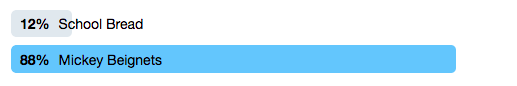 Before we move on to today’s matchup, let’s take a look at our last result. It was our most one-sided contest yet. Disney fans decided the Mickey Beignet is the superior pastry to the School Bread and it will move on to the finals of the Sweet region.