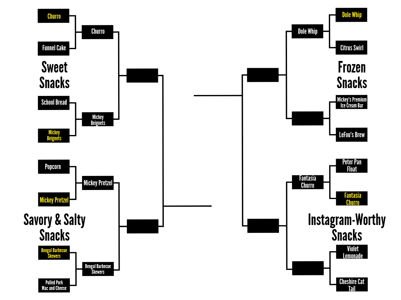 Be sure to come back tomorrow as we reveal the winner of today’s poll and continue onward through our bracket to crown the best Disney Snack!