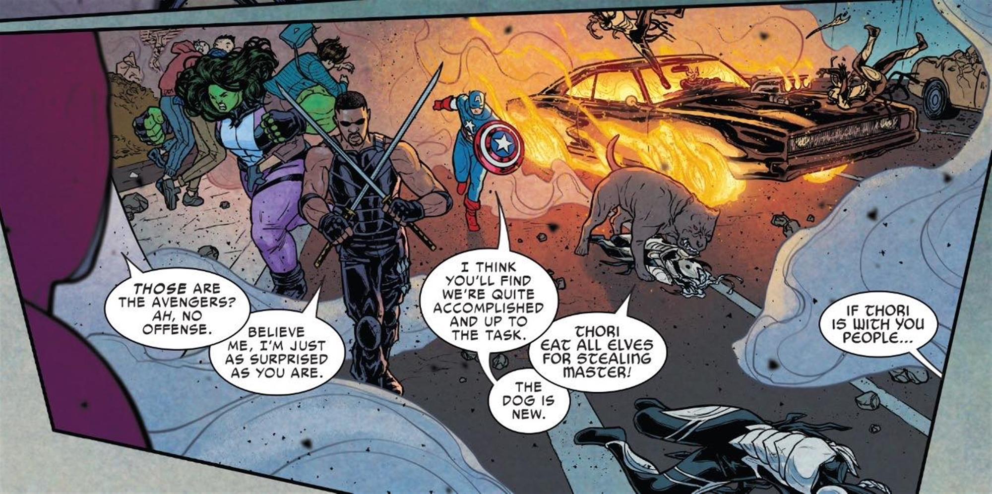 As is usually the case with the start of a massive Marvel crossover event, there’s quite a bit of context you’re going to be missing out on if you’re not up to date on your recent series. For example, a very peculiar lineup of Avengers shows up to the fight, which you would only recognize if you’re reading the team’s current run (check out our review of issue #17 here).