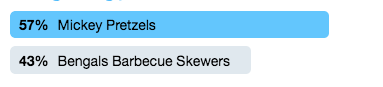 Before we move on to today’s matchup, let’s take a look at our last result. Another classic moves on. The Mickey Pretzel won a close one over the Bengal Barbecue Skewers to move on to the final 4 where it will take on another Disney Parks classic in the Churro.