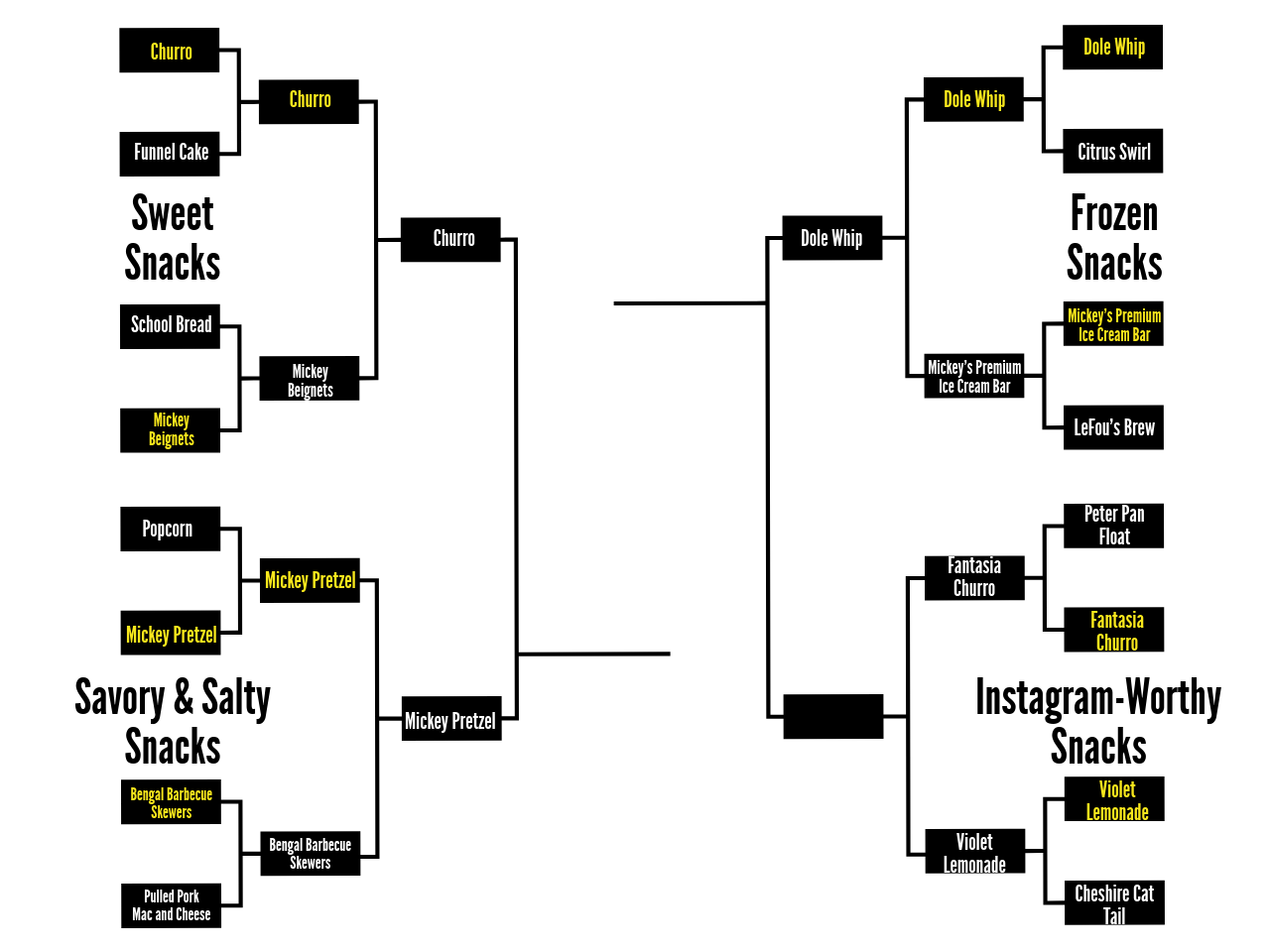 Be sure to come back tomorrow as we reveal the winner of today’s poll and continue onward through our bracket to crown the best Disney Snack!