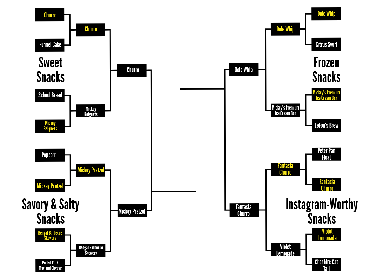 That brings us to the first of two semifinal matchups. It doesn’t get any more classic than this. Which Disney snack do you go for first? Do you try to satisfy your sweet tooth with a cinnamon-sugar covered Churro or do you go for a snack that is certainly worth its salt in the iconic Mickey Pretzel. Only one of these snacks can move on to the finals of our tournament.