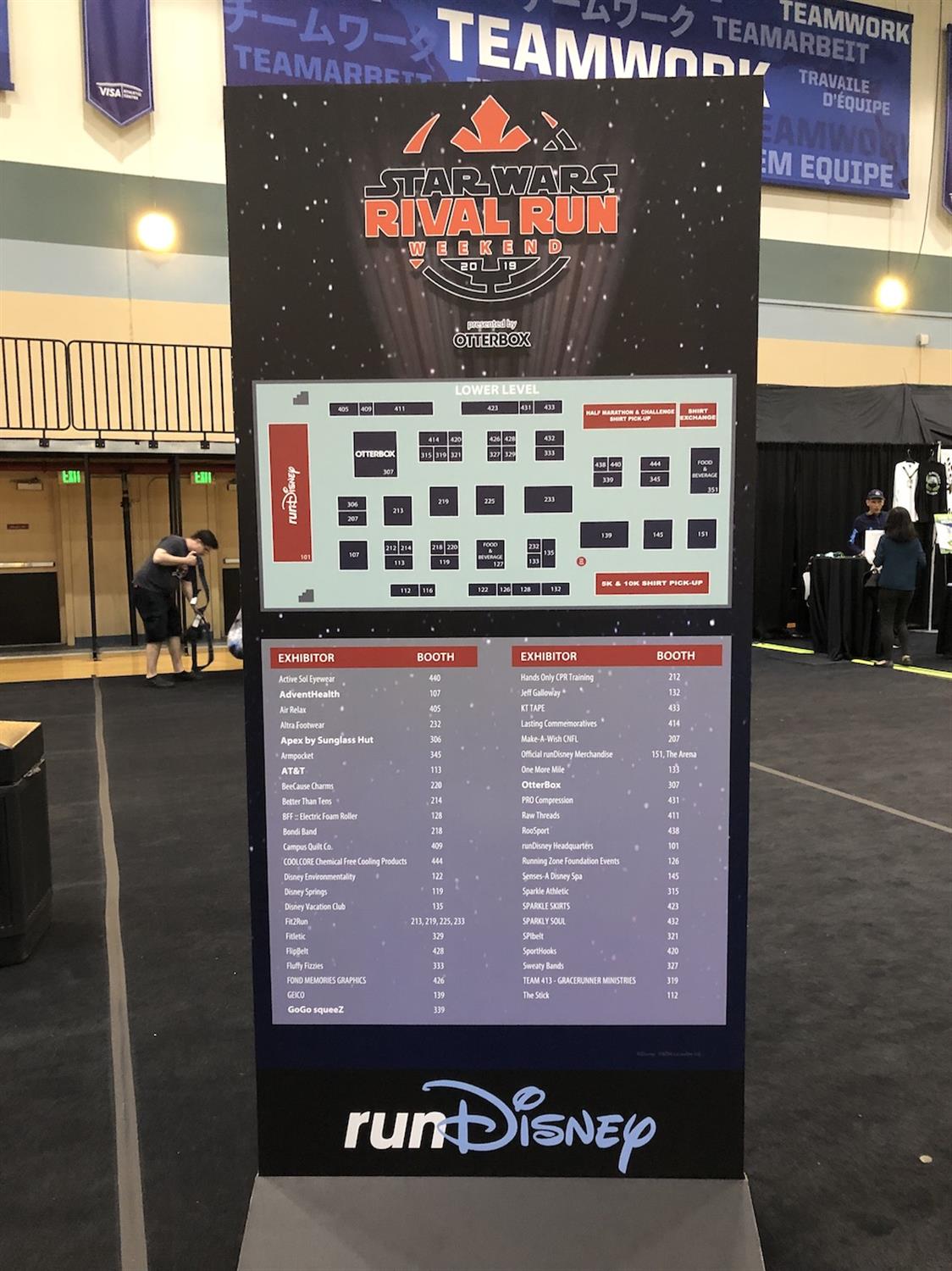 The show floor was where we picked up our race shirts and then browsed the different vendors and offerings. Some of the notable vendors included race sponsor, Otterbox, Geico, and Jeff Galloway. As you can see in the pictures, guests could also enjoy massages from Disney’s Senses spa, or relax in massage chairs. There was a booth promoting the upcoming Star Wars: Galaxy’s Edge lands debuting this year, and one highlighting Disney’s environmental commitments.
