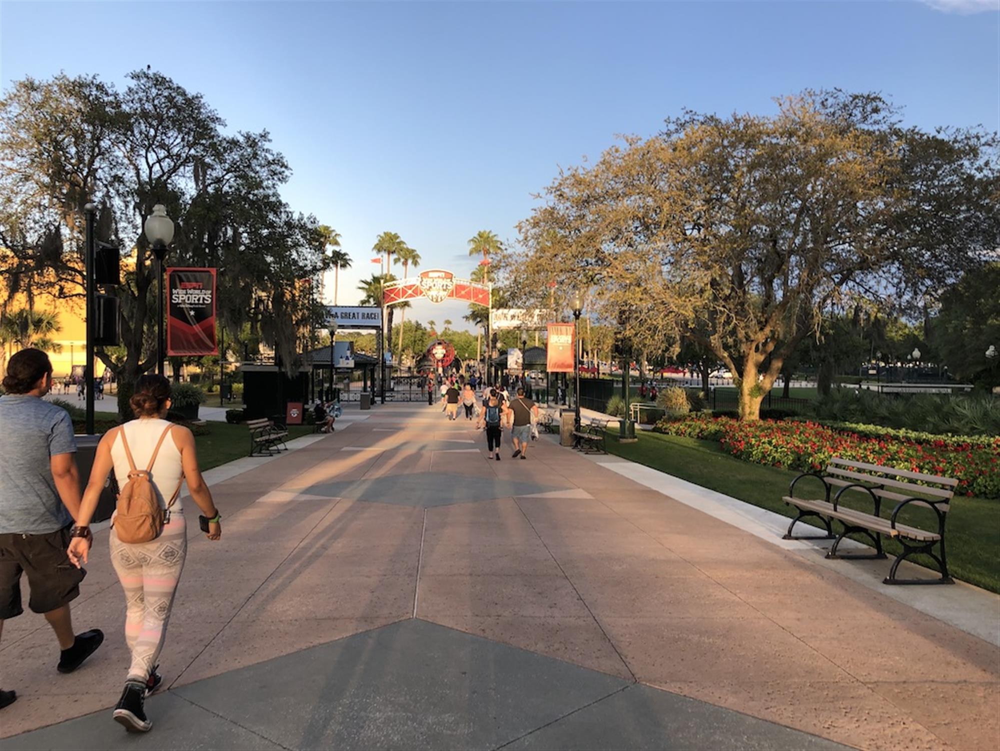 I love the runDisney Expo at Walt Disney World, simply because it actually feels like an expo. There’s plenty of space, vendors, and shopping. The expo itself feels like its own event and really like that. When we arrived, we entered the The Arena for bib pickup before heading up to the Visa Athletic Center for the Expo. On the way to the Expo, Disney has set up picture displays of the Rival Run medals.