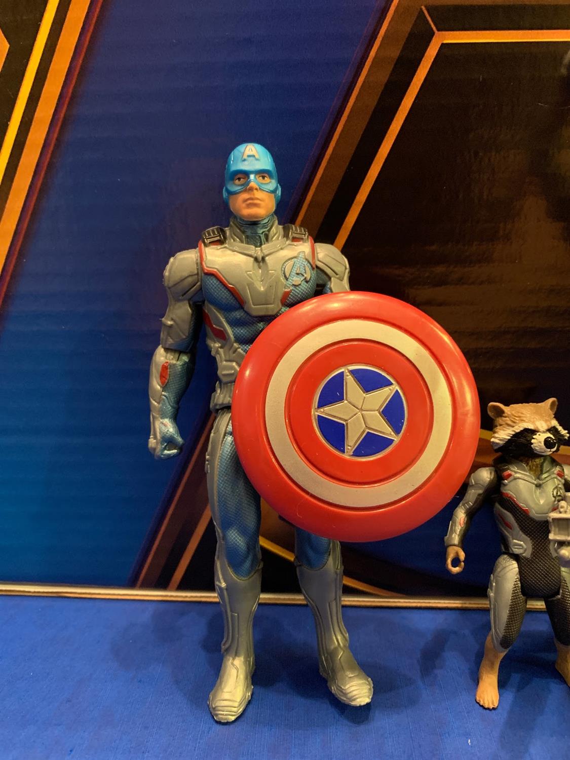 Two packes of playline action figures in 6-inch form were included in the box, each including two figures. Captain America teams up with Captain Marvel, while Thor and Rocket Raccoon make an unlikely pairing. There are additional characters available in this line, including Iron Man and War Machine.
