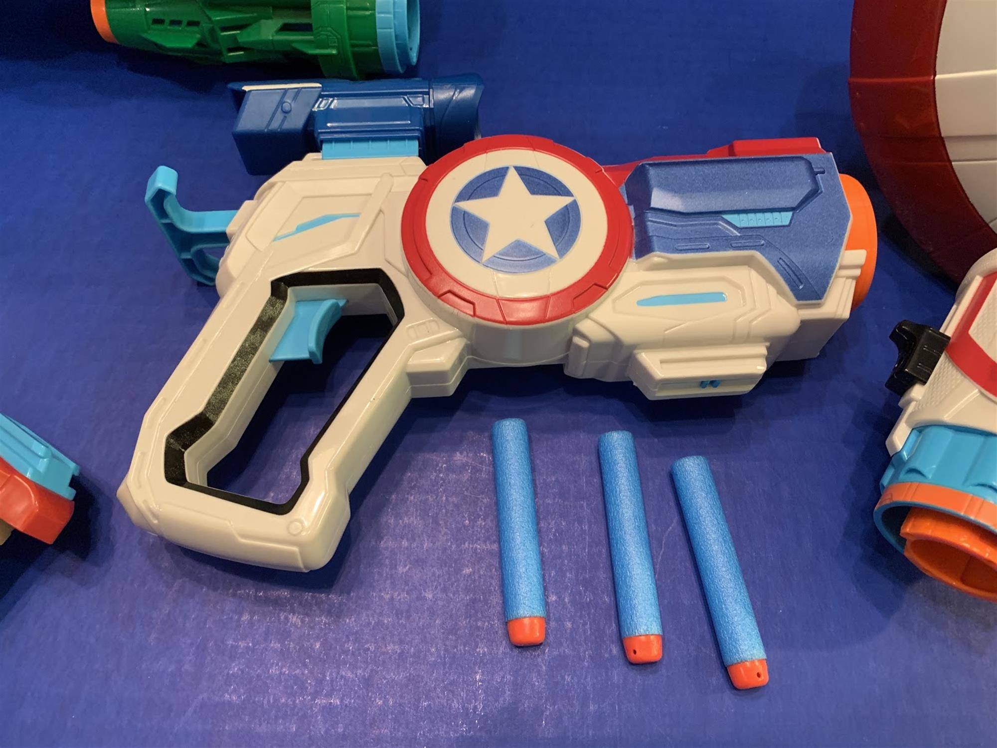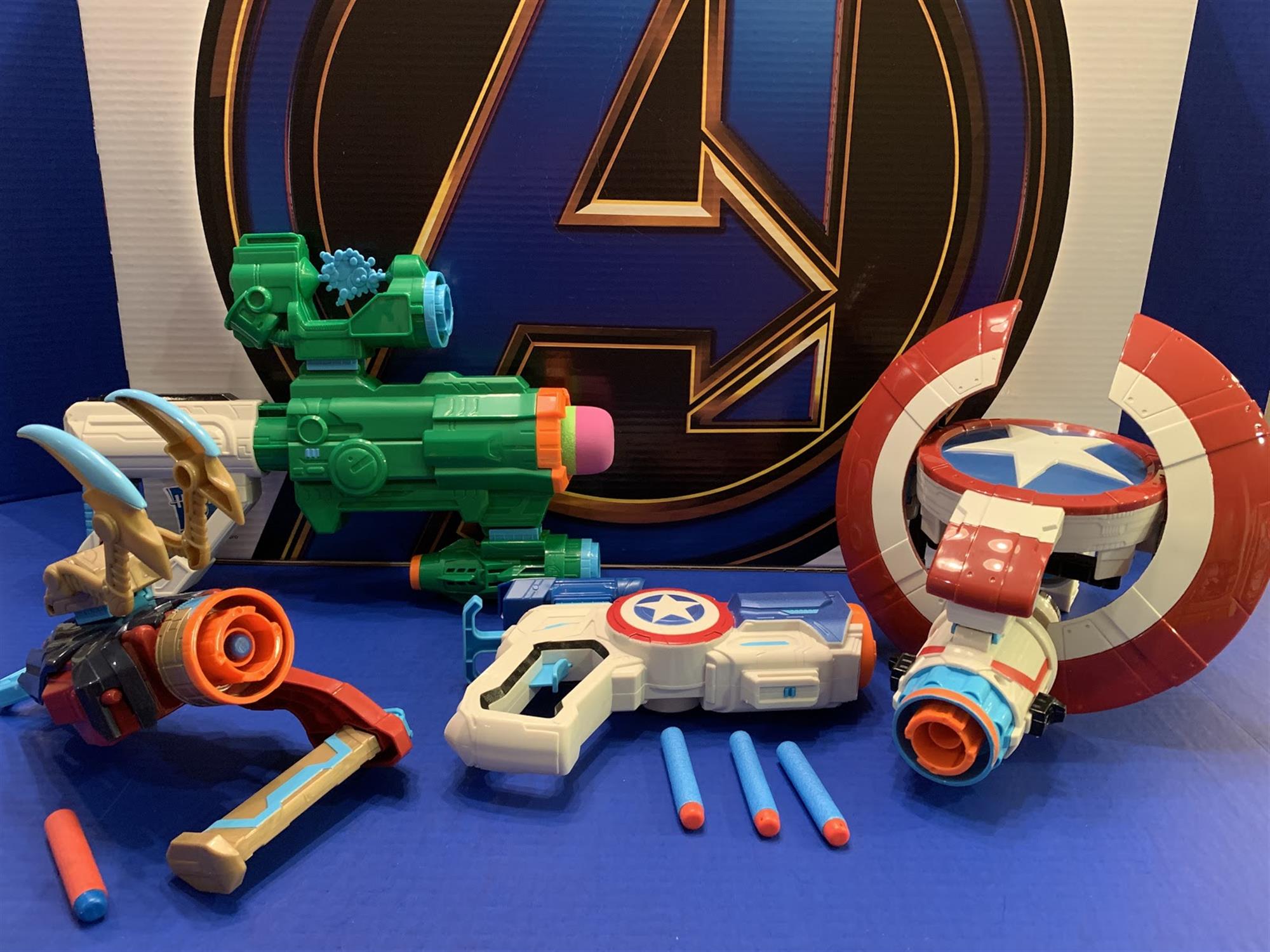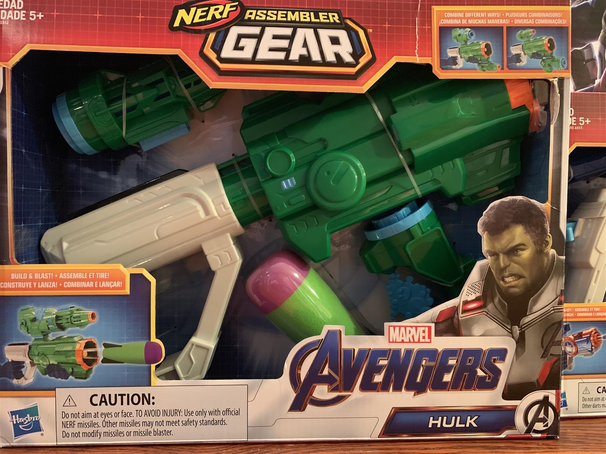 Four Nerf weapons themed to Captain America, Hulk, and Iron Spider were at the bottom of the box. Each of these allows kids to rearrange the pieces and customize their looks. My favorite is the Captain America blaster that includes a shield that can be rearranged to become a shooter. The Hulk blaster is pretty cool as well and a refreshing change from the typical smash gloves.