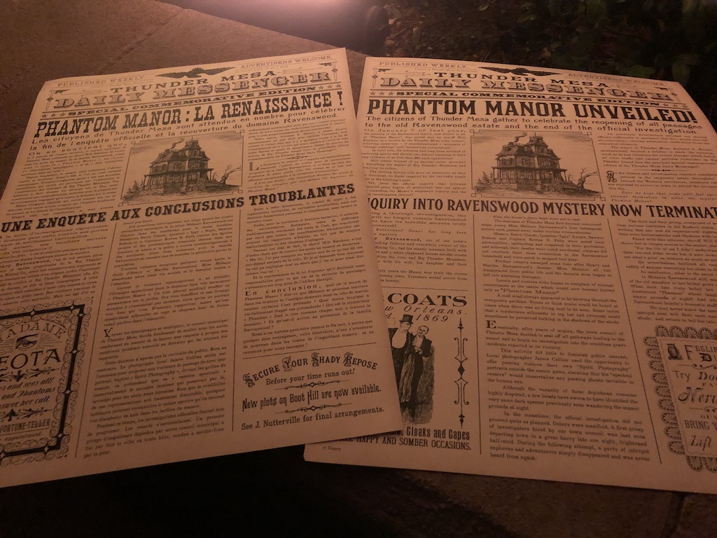 When we entered the park, we were led through one of the Arcades and then across Main Street and finally over to Frontierland. Here, Cast Members were handing out special editions of the Thunder Mesa Daily Messenger. The newspaper was written in French on one side and English on the other.
