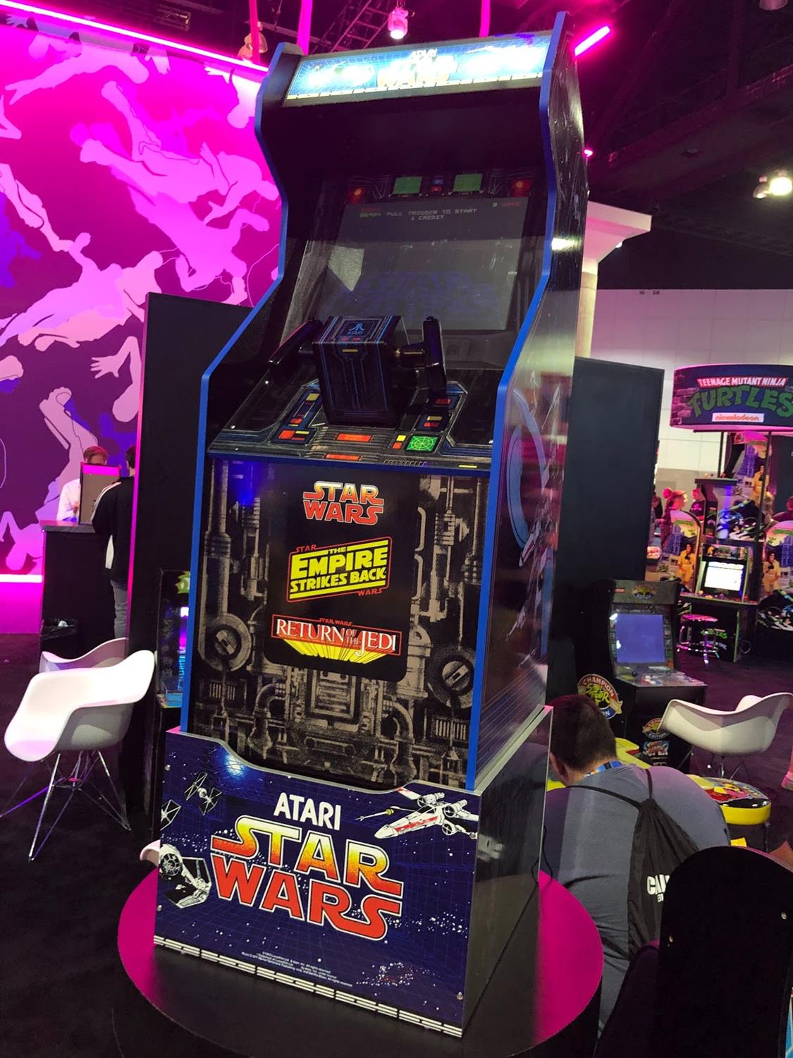“You get a great mix of both your traditional fighting games and your beat-’em-up Final Fight style game. They’re restored to as close to the arcade version as we possibly can get with current [technology]. We’ve redesigned the joysticks, we’ve implemented better buttons, and we’ve improved the screen, so it all [adds up to] a more robust machine,” said the Arcade1Up representative I spoke to at the convention.