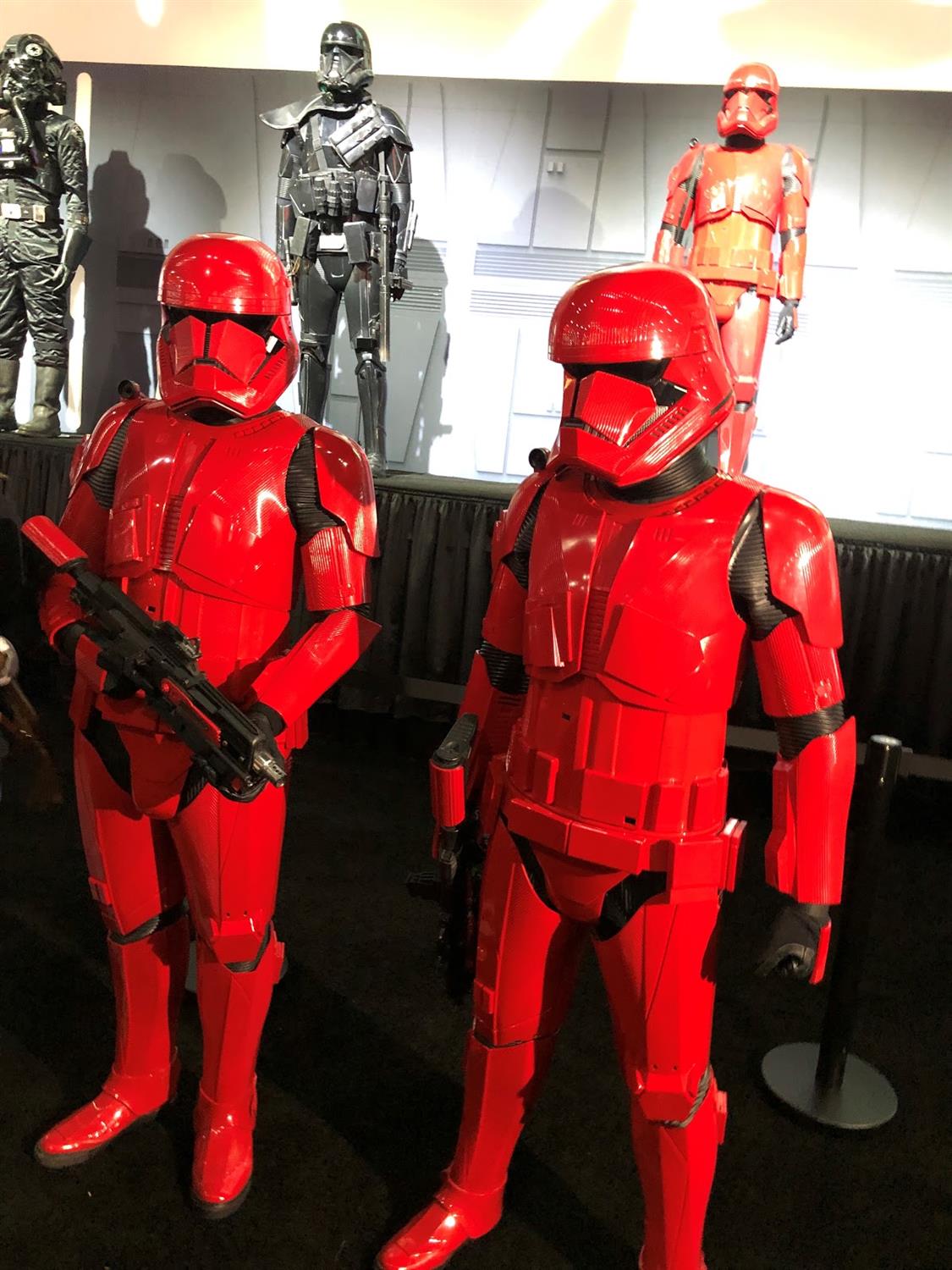 Tonight, SDCC ‘19 opened its doors for Preview Night, and indeed, the Lucasfilm booth was populated not only by a display featuring the evolution of Stormtrooper armor over the past four decades of Star Wars movies (as was also promised by the company) but two Sith Troopers available for meet-and-greet photo opportunities with attendees.