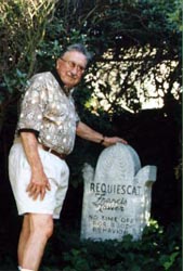 X.: Yeah it’s out back. Do you want to see it? [At this point we stepped outside to see the tombstone. He had placed it off to the side of his lawn, in a hedge behind the diving board of his pool.]